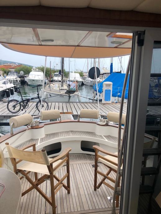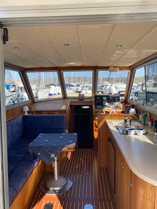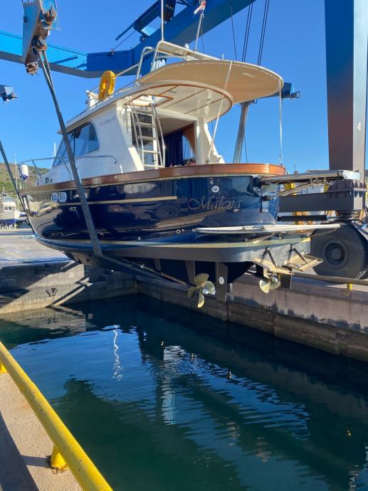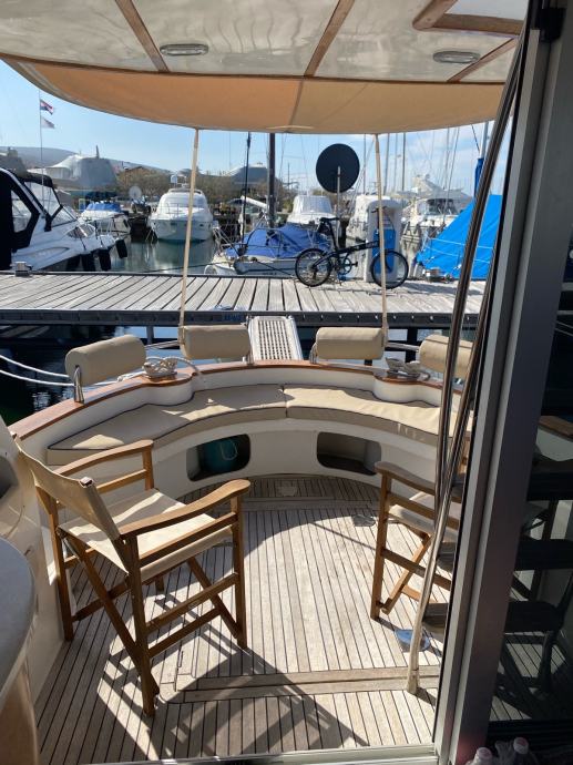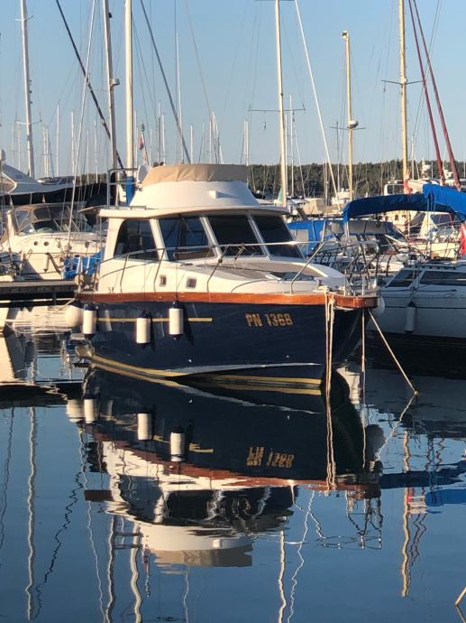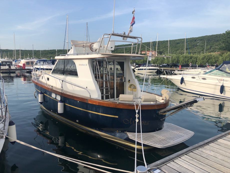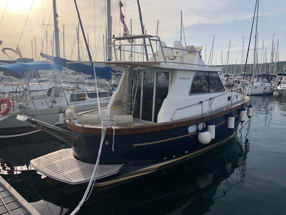 Prekrasan i jedinstven brod Adria Mare 38, sa flybridgem. Dva kultna Yanmar motora svaki snage 315 ks, sa samo 430 radnih sati. Izuzetno uščuvan i malo korišten. Ima hidrauličnu pasarelu i samo privatno korišten . Nalazi se u moru u marini Punat na Krku. Kompletno spreman i servisiran za narednu sezonu.posjeduje tendu na flybridge-u te tender na krmi broda.
