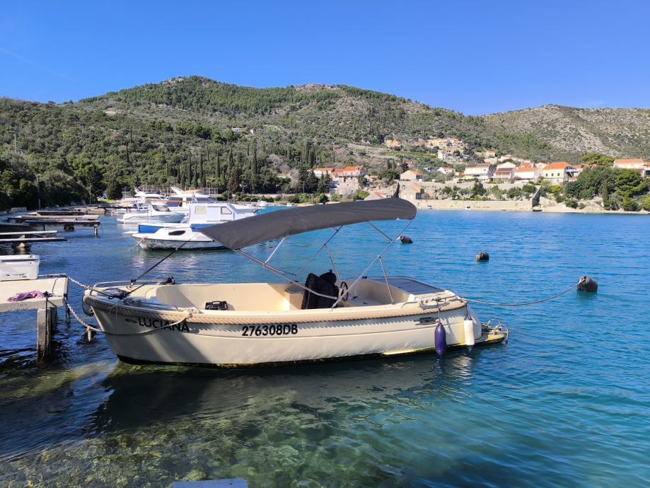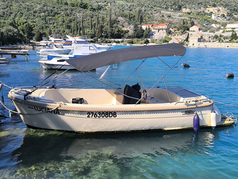 Brzina brodice s novim koperom je :cca 14-16čv s 4-6 osoba(glisiranje)-ovisi o stanju mora,troši cca 1-1,2 litre na 1Nm(ovisi o broju osoba i stanju mora)!!Ekonomski isplativ vrlo. Registriran za 8 osoba,ali komotno mogu sjedati 8+2 osobe.ako ima djece u pratnji!
