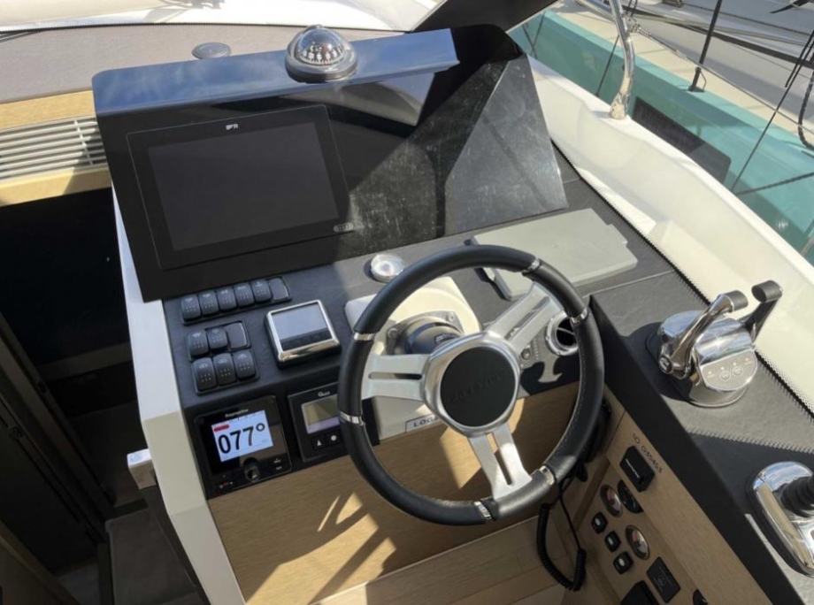 Elektronika: Raymarine elektronički paket iz 2021. za motorizaciju s joystickom (1 GPS multifunkcionalni ekran AXIOM 12”, 1 AXIOM 12” na flybridgeu, Cummins sučelje, fiksna VHF stanica Raymarine RAY91 s AIS prijemnikom i dvostrukom kontrolom), električni flapsovi, autopilot s dvostrukom kontrolom, FUSION audio paket + zvučnici