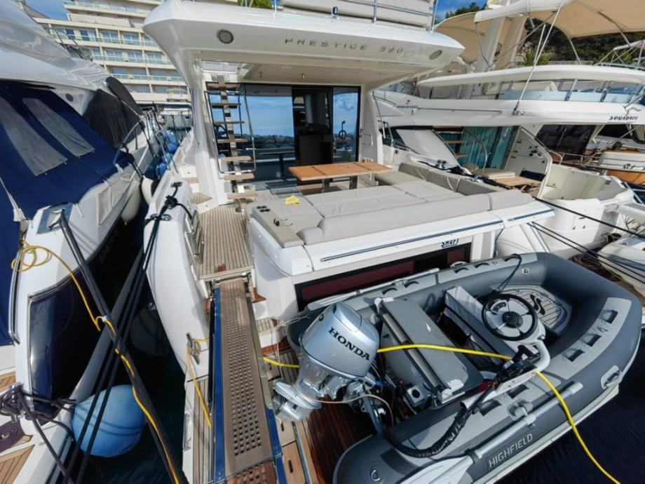 Exportna cijena : 1.030.000,00 Prestige 590 Fly je luksuzna jahta modernog dizajna i sofisticiranog sadržaja.