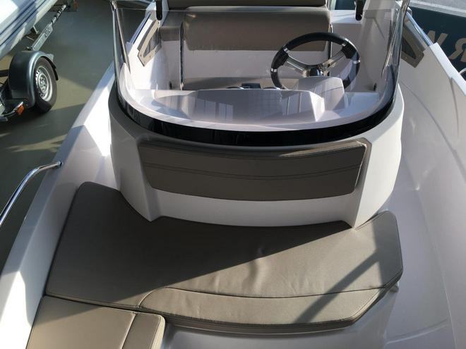 Serijska oprema: volan s upravljačkim mehanizmom, vodilica sidra, spremište za sidro i konope s poklopcem na pramcu, privezne bitve (4 komada), ograda od nehrđajućeg čelika, ljestve za kupanje (inoks + plastična gazišta), presvlake u kokpitu i pramcu, krmena klupa s naslonom, skiperska klupa s naslonom (može se okrenuti), centralna konzola s vjetrobranom, nepovratni odvodi za vodu...