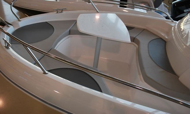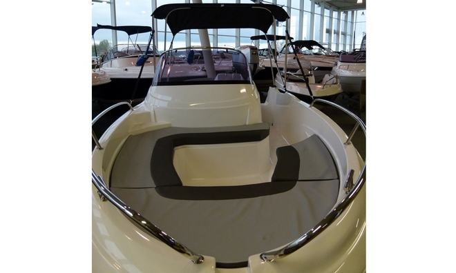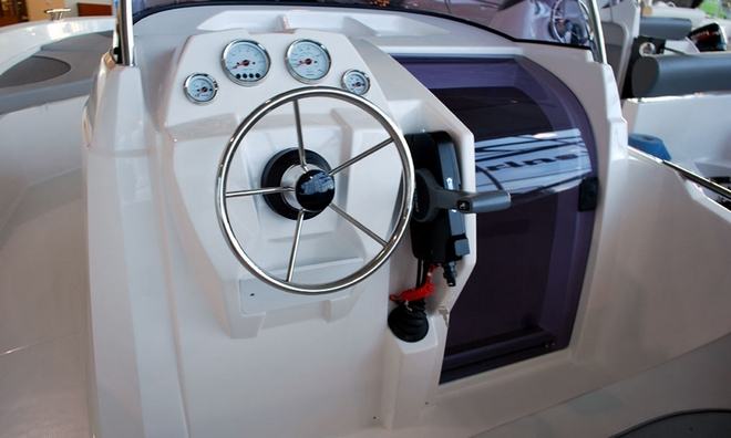 Serijska oprema: volan s upravljačkim mehanizmom, vodilica sidra, prostor za spremanje sidra i konopa s poklopcem na pramcu, privezne bitve (4 komada), ograda od nehrđajučeg čelika, ljestve za kupanje, presvlake u kokpitu i pramcu, krmena klupa s naslonom, centralna konzola s vjetrobranom, vratima za ulaz u kabinu i armaturnom pločom, nepovratni odvodi za vodu...