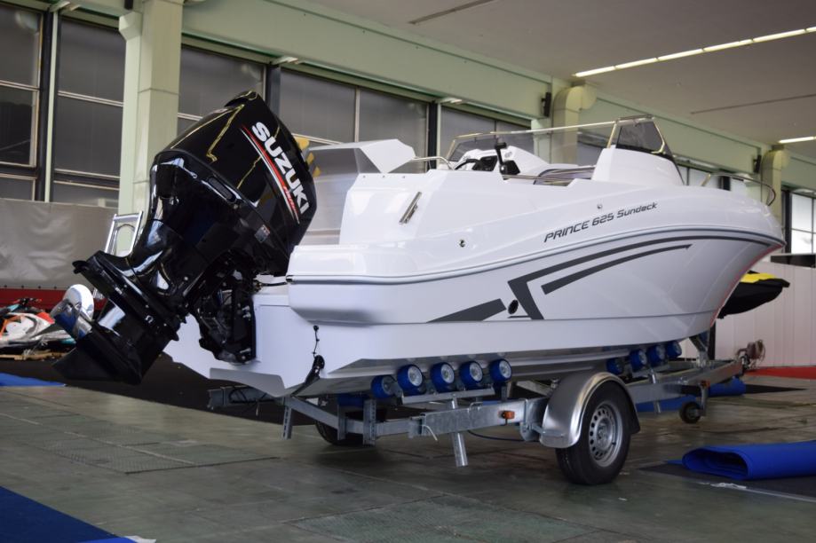 Plovilo PRINCE 625 Sundeck ujedinjuje četiri tipa plovila. To je brzi gliser, fisherman, plovilo s kabinom i sundeck-brodica s velikim sunčalištem naprijed. Paluba je prostrana i omogućava nesmetano kretanje i prostor za izležavanje na suncu, a pod palubom se nalazi kabina s ležajem za najmanje dvije osobe. Kabinsko okno na pramcu daje plovilu moderan i elegantan izgled. Kokpit je oblikovan u "L" obliku, a prijelaz na platformu je jednostavan i ne zahtjeva prelazak preko jastuka sjedala. Bočni prolazi su široki i sigurni. Armaturna ploča omogućava ugradnju većeg GPS plotera uz ostale uređaje.