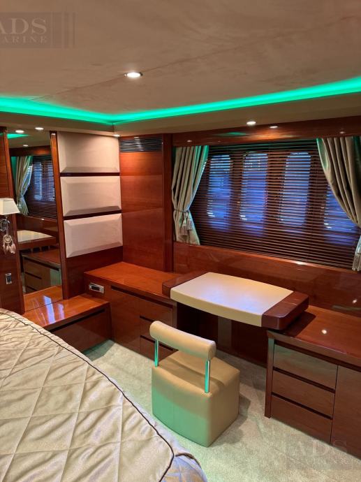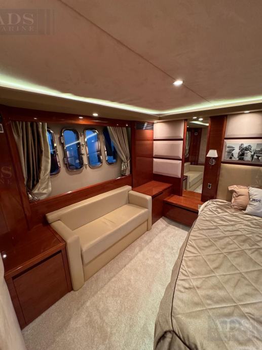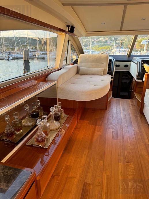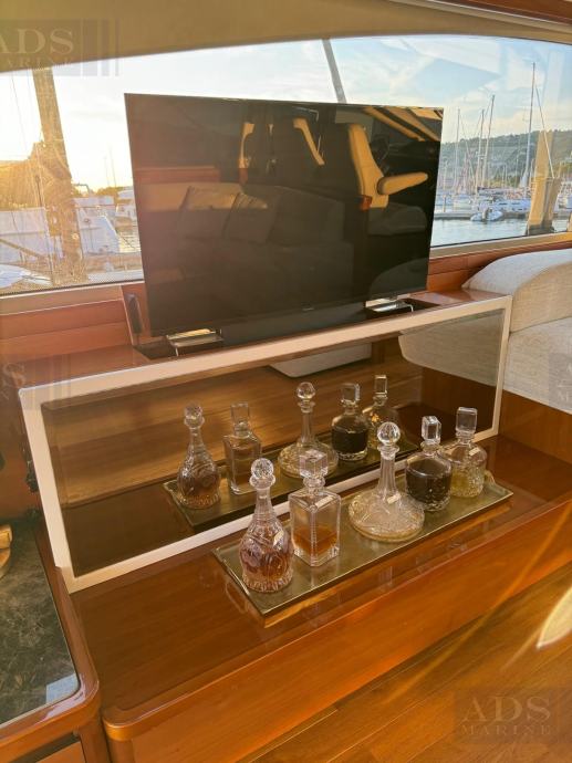 Interijeri izrađeni po narudžbi: remontirana salonska bočna sofa i zamijenjena ormarićem s TV-om na uvlačenje, salon je preinačio dvije stolice u naslonjač, mala kabina spojena u veći kuhinjski prostor sa sofom i stolom, raspored broda ima 2 spavaće sobe