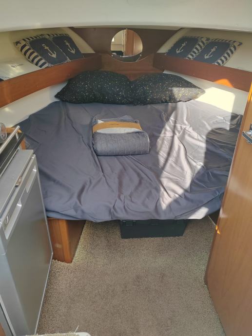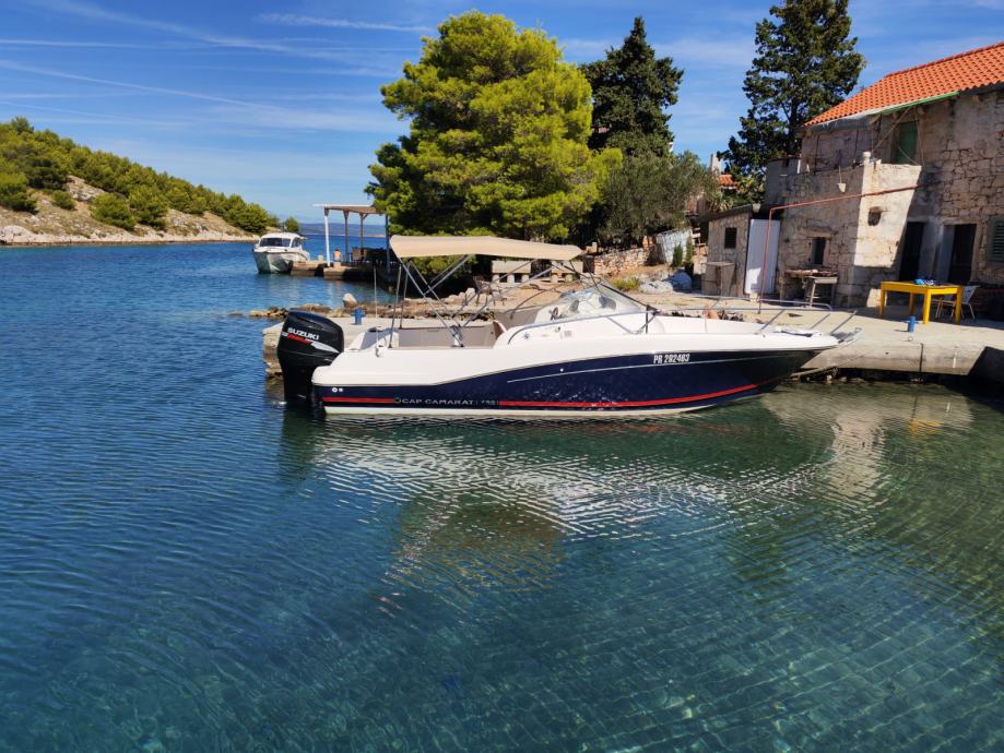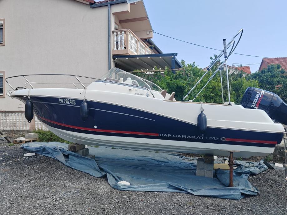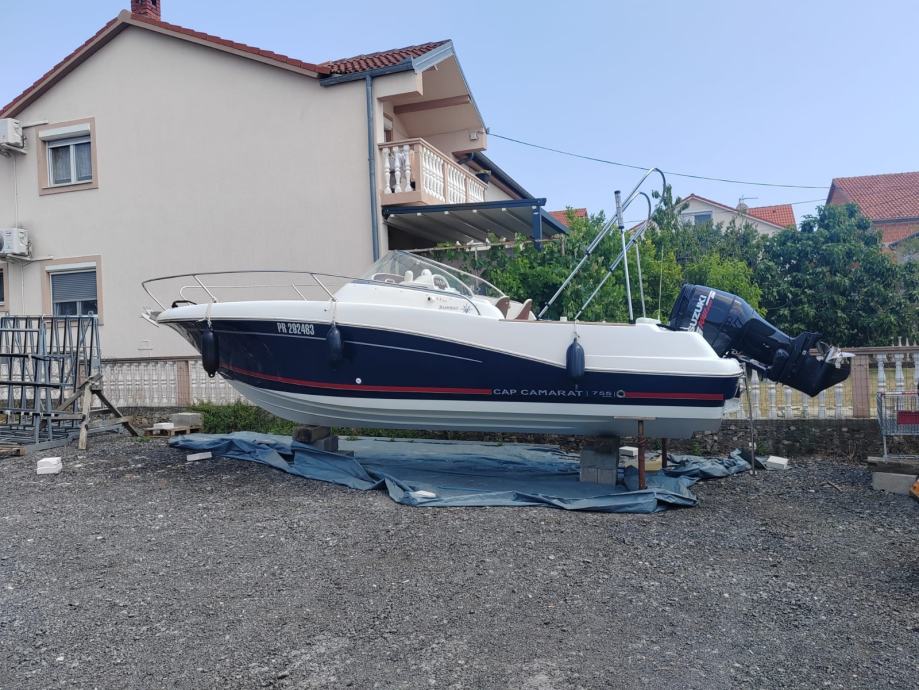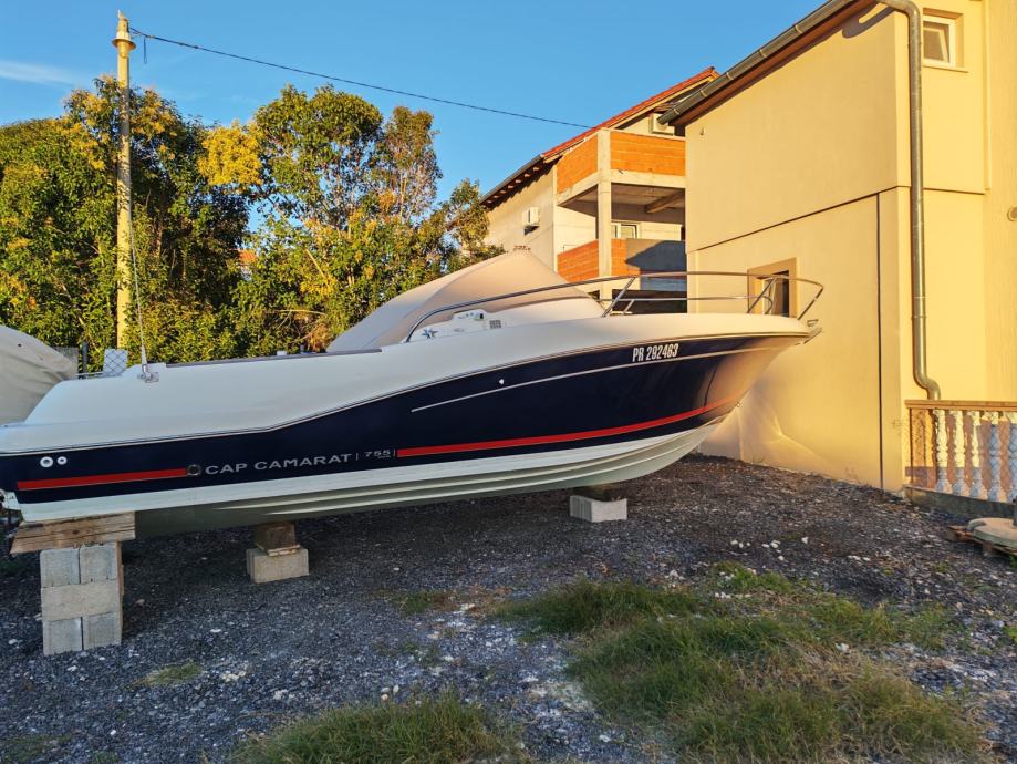 Prodaje se Cap Camarat 755 U Top stanju penta ima 450 Radnih sati, svi servisi napravljeni i spreman je za sezonu. Tehnički pregled napravljen prošle godine u 6.mjesecu. Ima WC, frižider, sudoper, tuš rezervoar vode 150 litara, električno sidro, punjač za baterije itd.