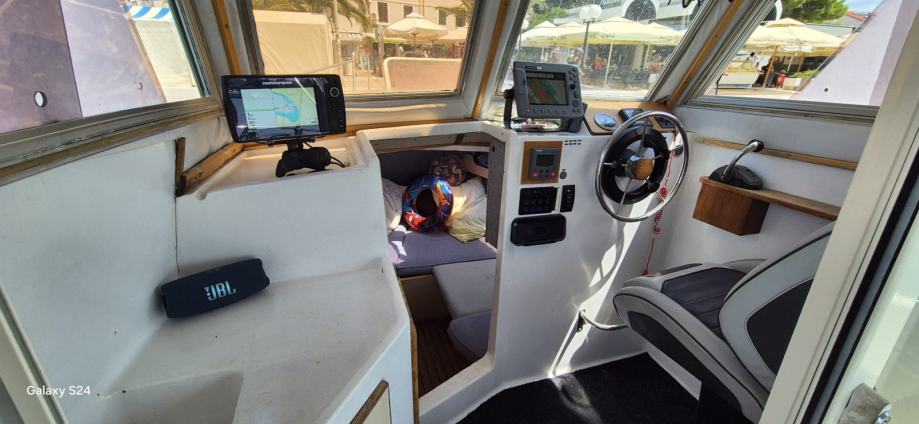 Na brodu je sve od opreme sto vam je potrebno za boravak na moru. Auto pilot,ploter ,fishfinder, minn kota 36A, mini kuhinja, tuš na krmi, kamena paluba.