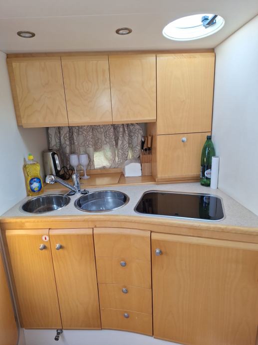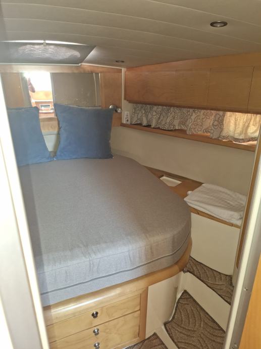 Prodaje se Fiart 38 Genius, 2005., unutrašnji motori 2 x Volvo D4-260, korišten samo privatno, sa jednim WC, dvije bračne kabine i trećom kabinom sa jednim ležajem, ovaj sport cruiser je idealan za obiteljska krstarenja. Opremljen je sa bow thruster-om, hidrauličnom pasarelom, tikovinom u kokpitu, ploterom, radarom, auto pilotom, VHF, dubinomjer, CD player, kontaktirajte nas za više informacija ,