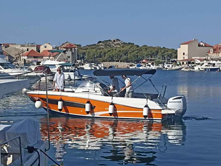 Motor je Honda 250 hp. Svi servisi uredno odrađeni na 100 sati.Kompletna tikovina na cijelom brodu . Na plovilu su mijenjane glave motora.