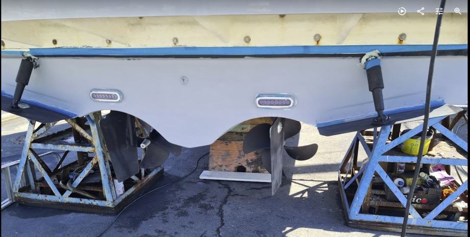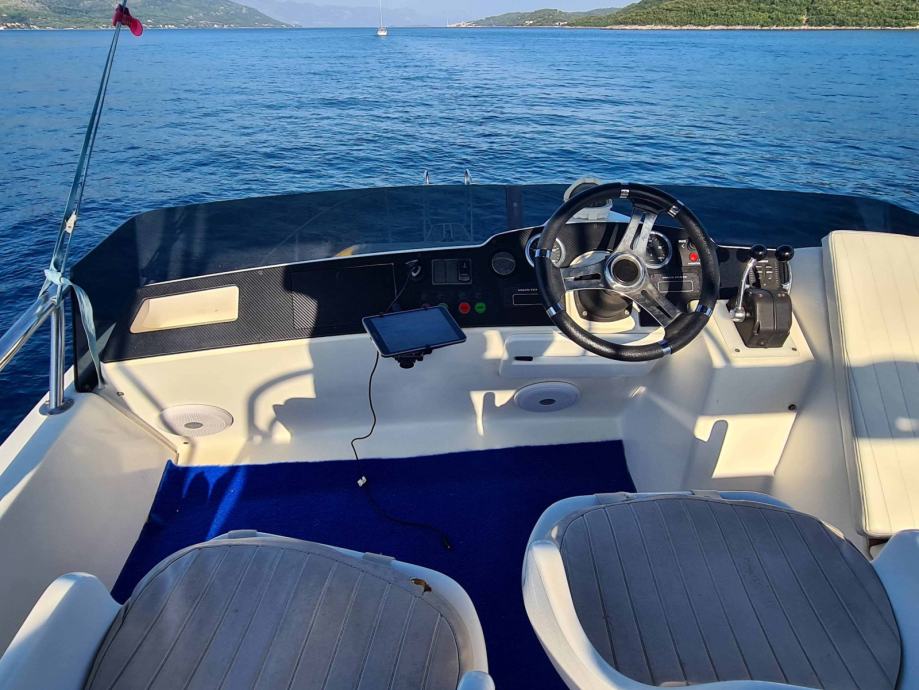 Brod je kompletno renoviran (gelcoat, motori, račji kljun, produžena platforma, elektronske komande)