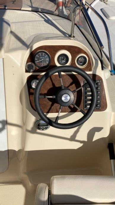 OPREMA: Tohatsu TLDI 50KS MD50B (2006), hidraulične trim klapne, dva tapecirana okretna sjedala, stol u kokpitu, marine radio + 2x zvučnik, integriranim sklopivim inox ljestvama za plivanje, spremištem za pramčano sidro, navigacijskim svjetlima, gornje svjetlo s jarbolom, jastucima v kabine, inox bimini, inox radarski okvir, zimska cerada za cijeli brod.