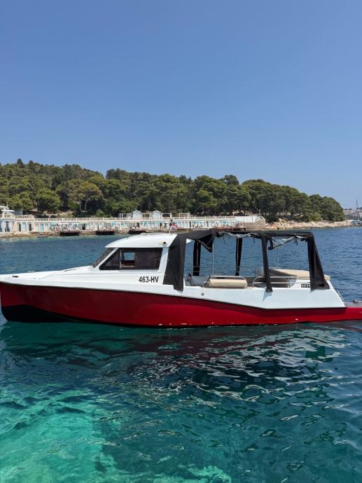Gliser 9 metara, registriran za prijevoz putnika. 12 putnika + 2 člana posade. Brod je kompletno pojačan. Motor Hyundai 270hp, star dvije godine u odličnom stanju, redovito servisiran. Prednost mu je mala potrošnja goriva, 20l na 25 čvorova.