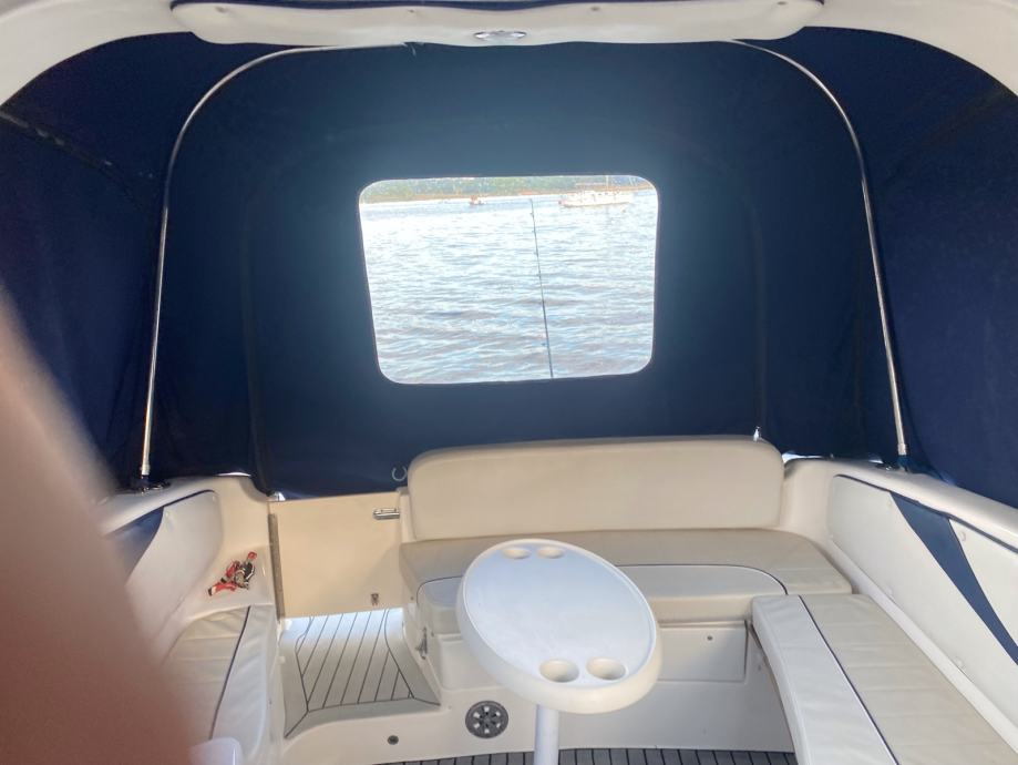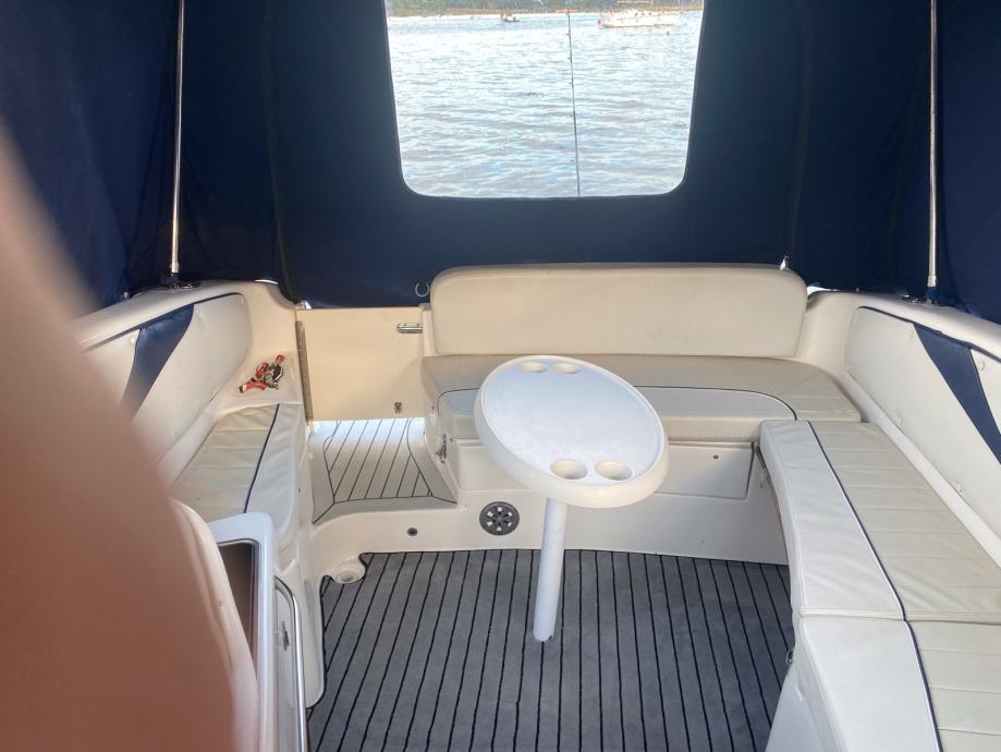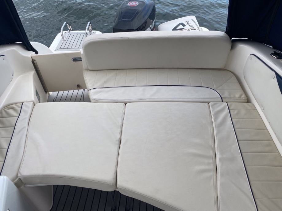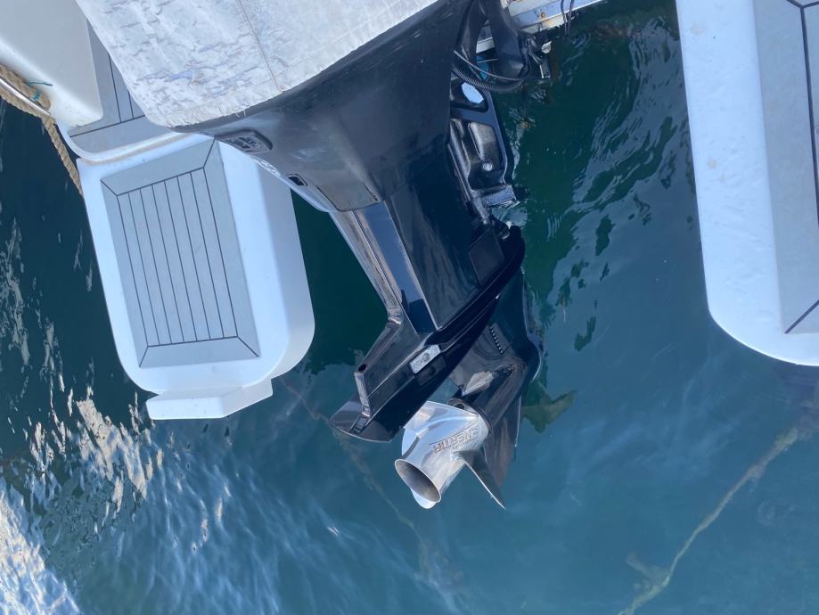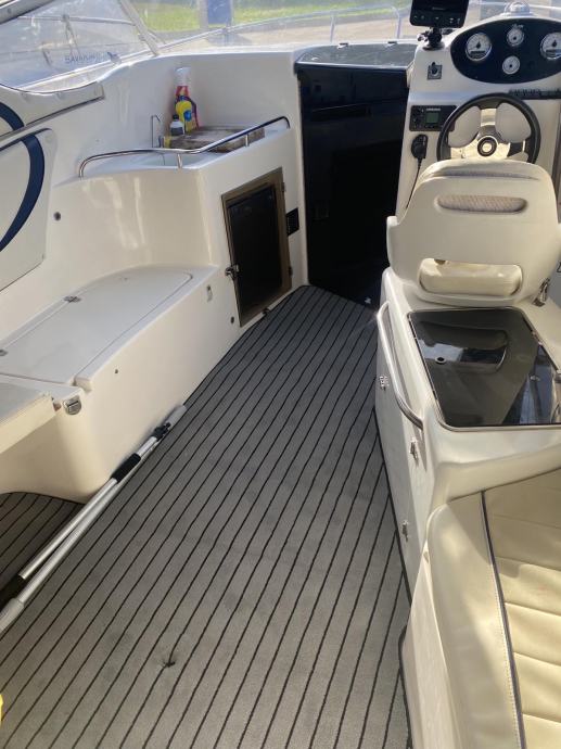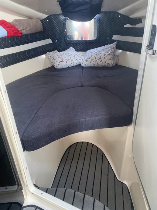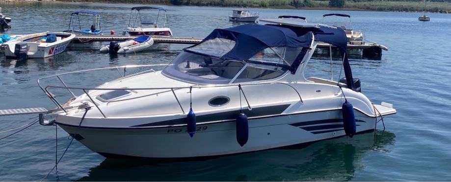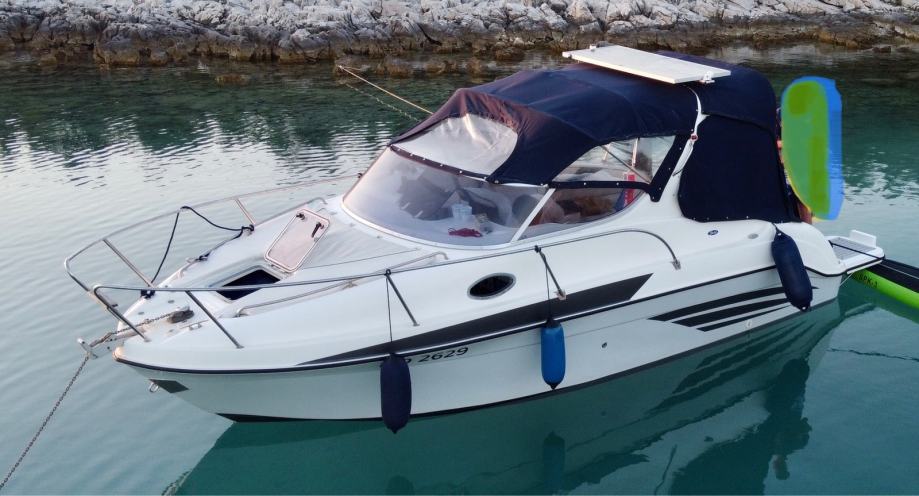 Dobro očuvan sa puno nove dodatne opreme, motorom Mercury optimax 150 xs pro 2014 godište, novom kamping tendom, teak oblogom i tepisima, el. wc sa tankom crnih voda, solarni sitem 200 W sa solarnom baterijom 200 Ah, novi startni akumulator 95 Ah, frižider Dometic, stakloplastični kuhinjski blok sa 2 plinska gorionika, 2 ploščadi za kupanje, hidrauličko kormilo, tuš, predpriprema za bowtruster ( cijev i el. instalacija),navigacija Dragonfly7, novi unutrašnji kreveti,ipd. Čamac je bio po 4 mjesece godišnje u moru, a ostalo suhi vez. Trajna registracija pod hrvatskom zastavom.