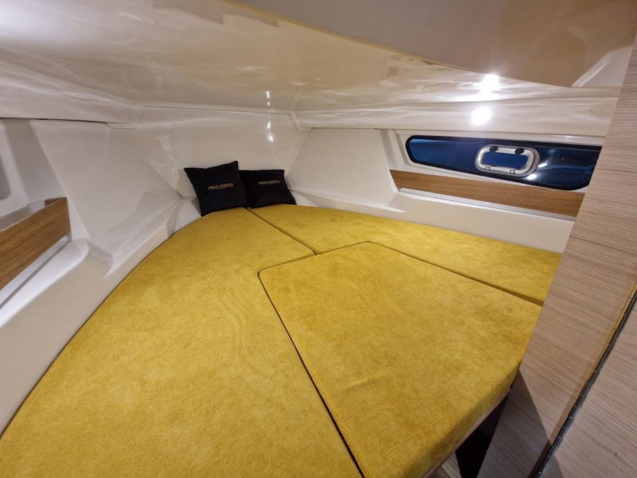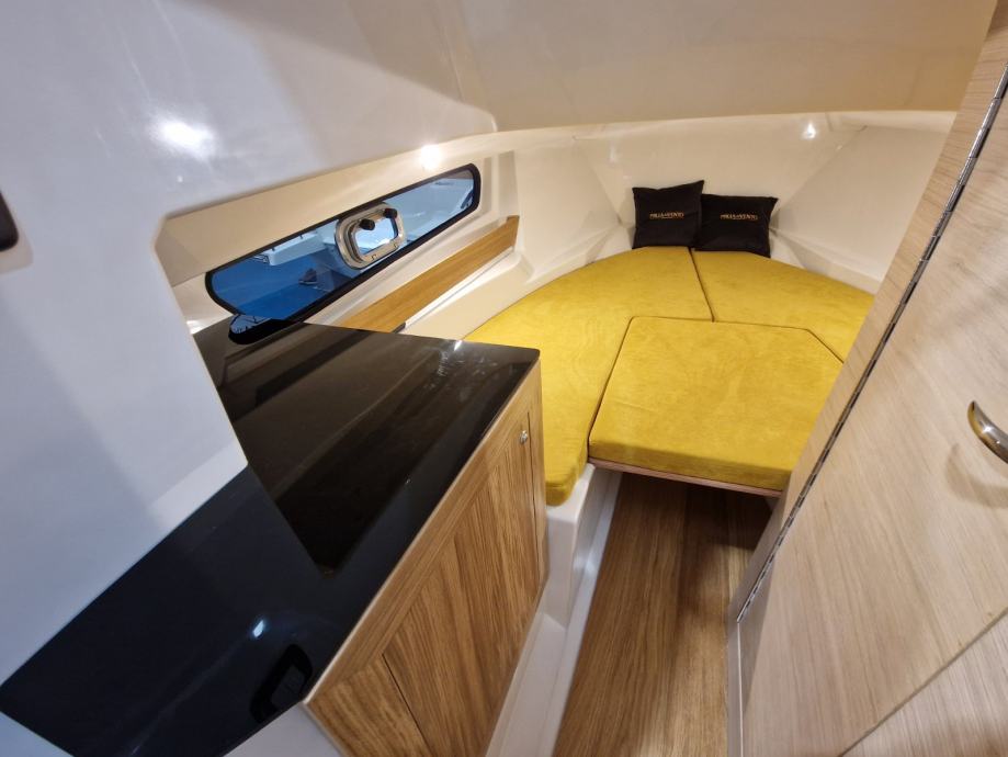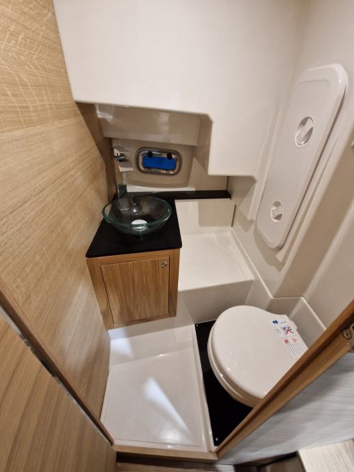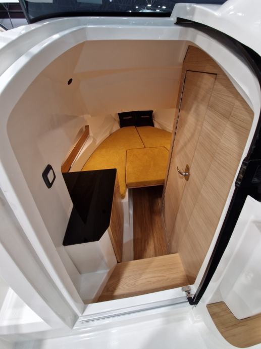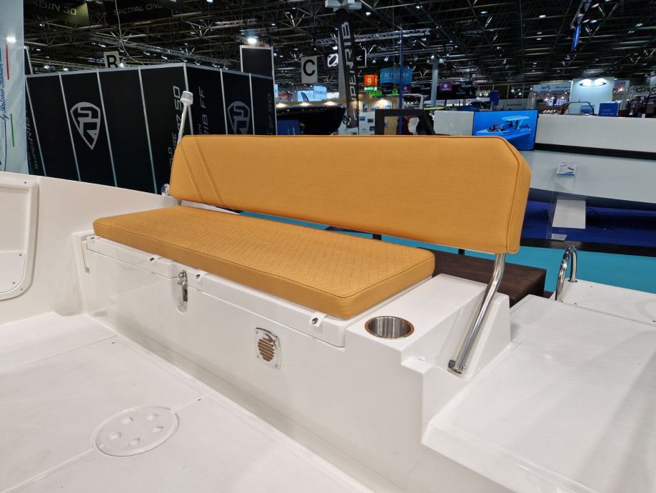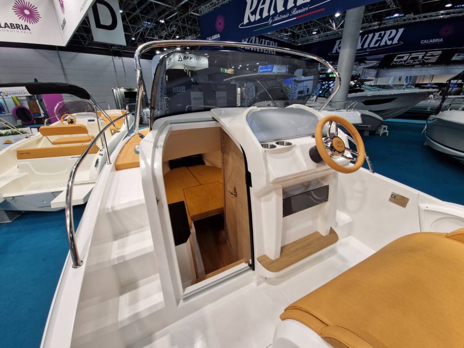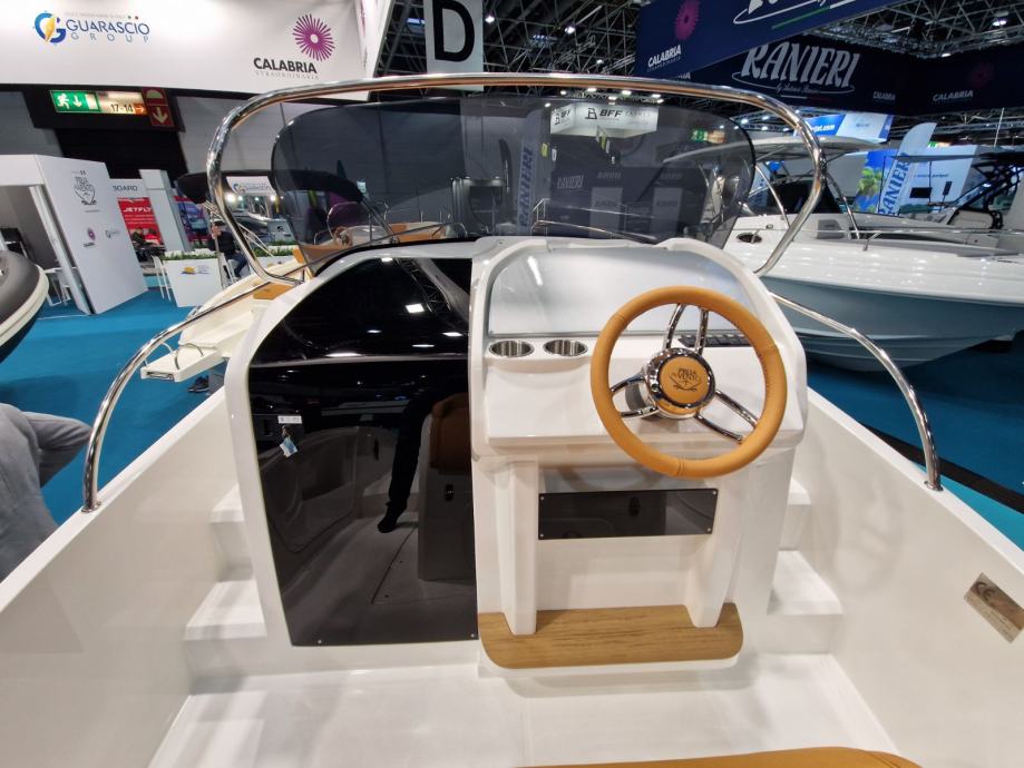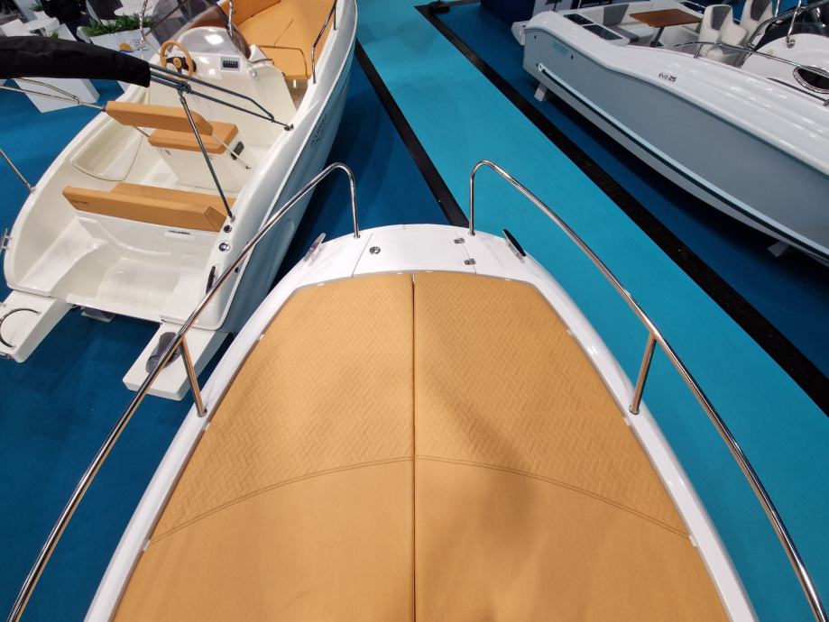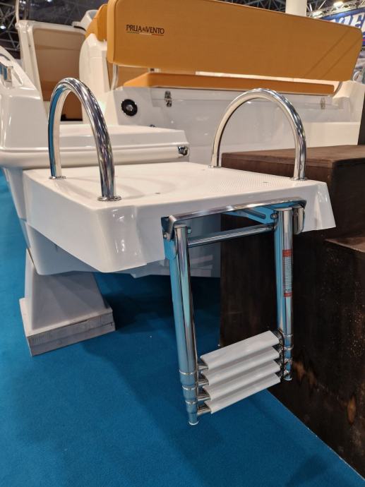 bijela boja trupa | navigacijska svjetla | volan | upravljačka ploča s prekidačima | vodonepropusna električna instalacija | električna sklopka | električna truba | kaljužna pumpa | plinski amortizeri i gumene brtve na poklopcima otvora spremišta | rukohvat od inoxa | inox ljestve na krmi | produžene plastične krmene platforme | 4 bitve za privez | set vanjskih jastuka | inox odzračnici | kormilarski naslonjač sa spremištem | klizna vrata kabine od pleksiglasa s bravom | jastuci u kabini iznad spremišta i stola | stropno svjetlo u kabini | priprema za ugradnju panela za odvajanje WC-a | hidraulični upravljački sustav | ugrađeni tank goriva 215 lt