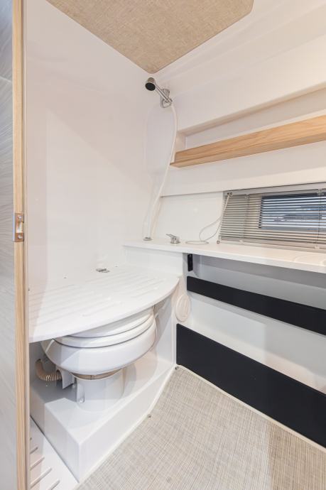 U prednjoj kabini nalazi se veliki krevet za dvoje, zatvoreni toaletni
