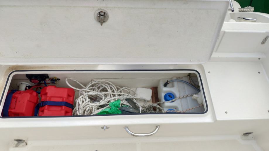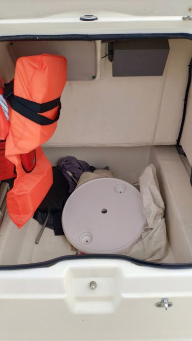 2 vlasnik. Brod ima novu foliju zlatno-zelenkaste boje ovisi o kutu gledanja. Ispod folije je savršeno očuvani gelcoat. Folija je stavljena da ocuva isti.Prilikom pregleda broda možete odlijepiti foliju ukoliko niste sigurni što je ispod iste uz polog od 3000 kn.