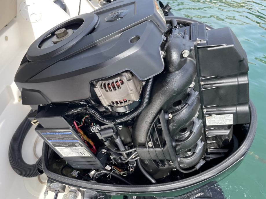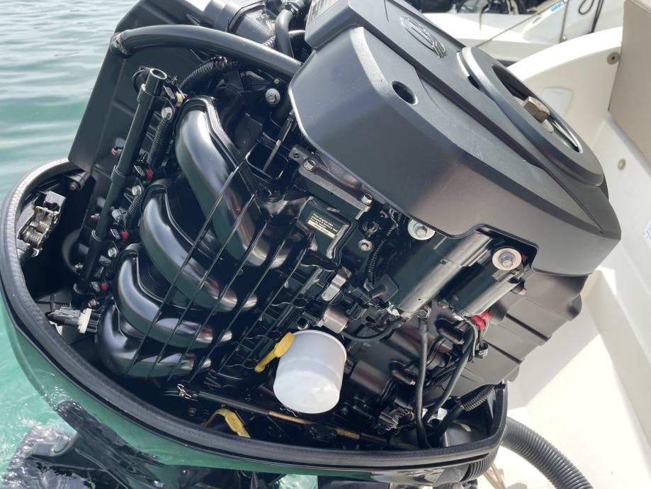 Servisi svakih 100 sati. Maksimalno odrzavan. Nema ostecenja (par sitnih ogrebotina). Jako mali potrosac (manje od litre po nautickoj milji).