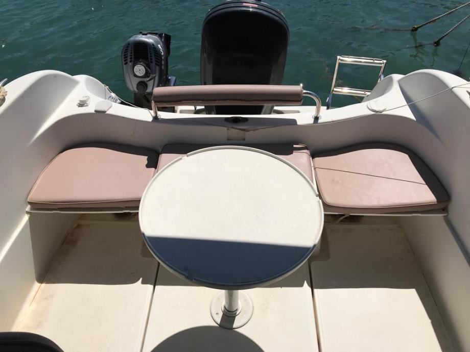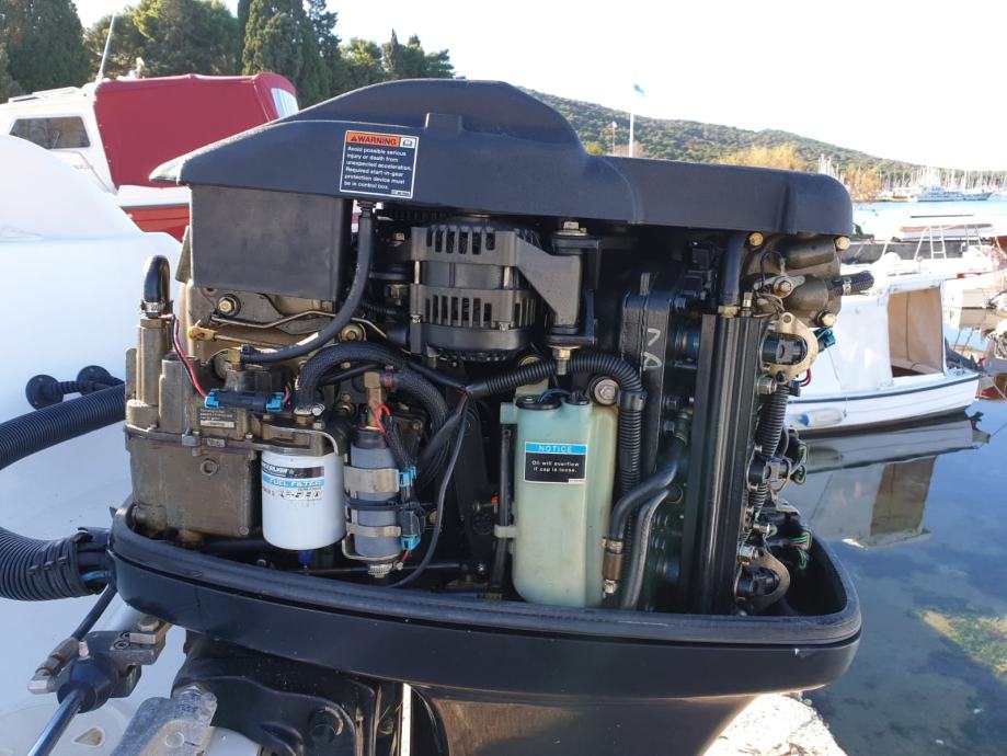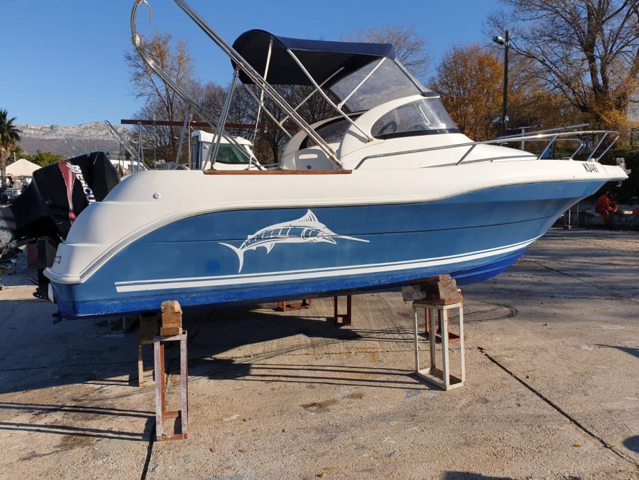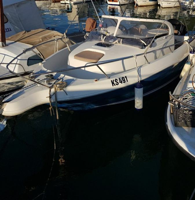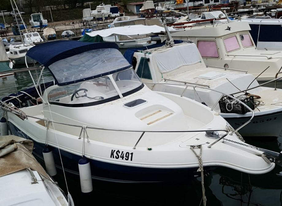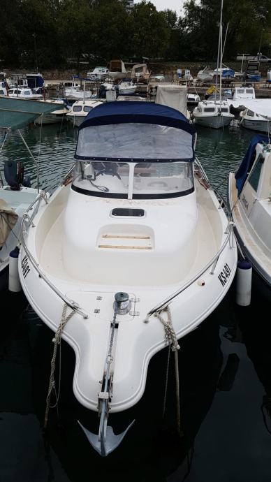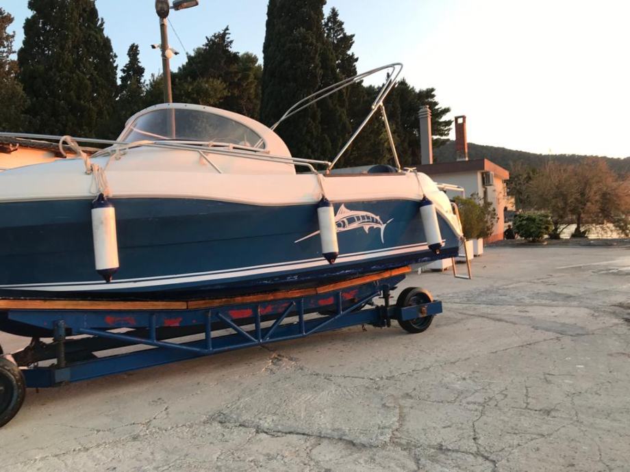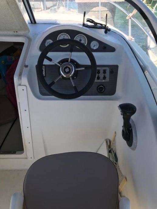 Prodaje se brod u vrhunskom stanje.upravo napravljen servis na motoru(impeler,ulje u peti itd.),intonak stavljen.brod ima 450 radnih sati i koristen je samo u privatne svrhe.uredno servisiran i cuvan.ima dosta opreme od tuša,elektricnog sidra sa daljinskim komandama,velika i mala tenda,gps i fish finder,stol,kusini i lezajevi kao novi,pomocni motor selva isto servisiran i uredan prakticki nevozen.motor je mercury 175 optimax.dvotakt sa direktnim ubrizgavanjem, potrosnje cca 25 litara na sat.motor je jako izdržljiv i jednostavan za odrzavanje