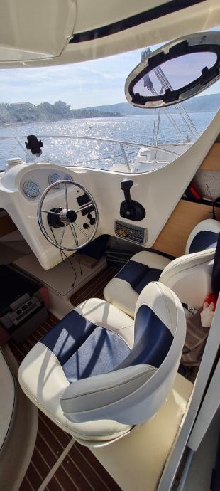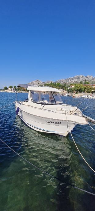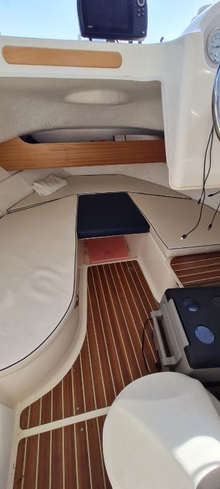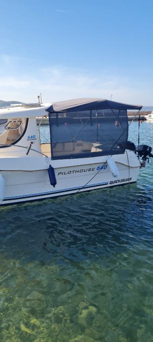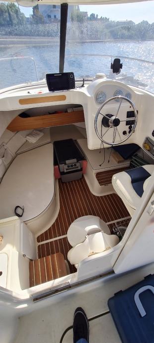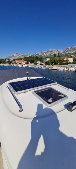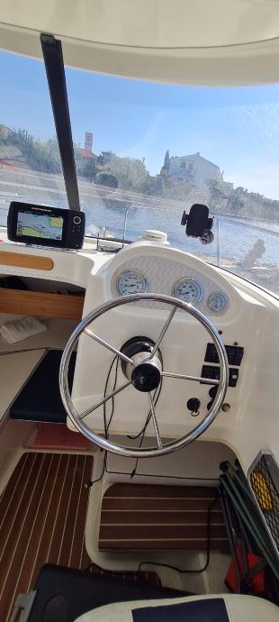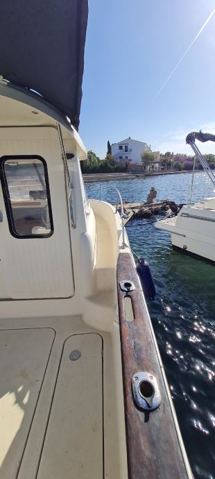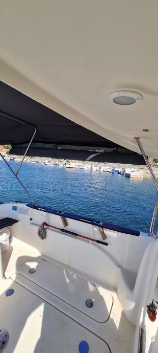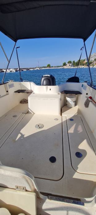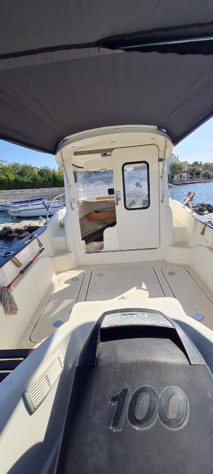 Brod je u odličnom stanju kao i motor., Merkury 100ph sa 380 sati . Brod je izvrstan za ribolov i kraće izlete ima prostranu krmu koja je prekrivena sa novom tendom preko cijele krme ima i sjenila sa dvije strane zaštita od kiše i sunca u kabini su ležaji za dvoje odraslih i jedno dijete. Od dodatne opreme ima električno vitlo, bazen za živu ješku, pomoćni motor Merkuri 5 ph solar 100w sa dvije baterije servisana 120ah i startna 75ah, frižider 45 l sonder itd.