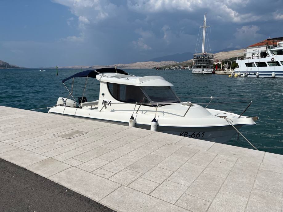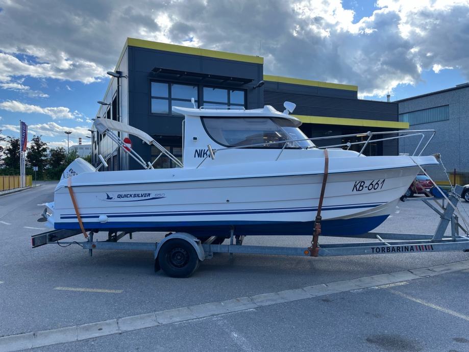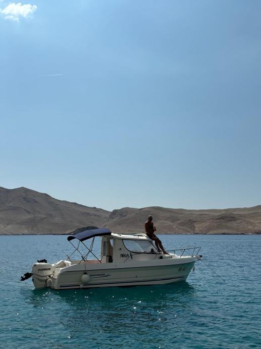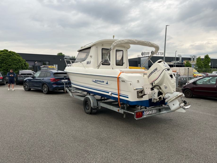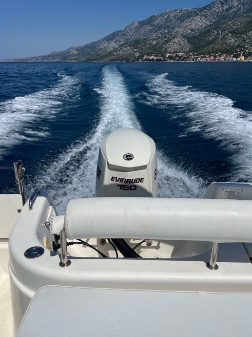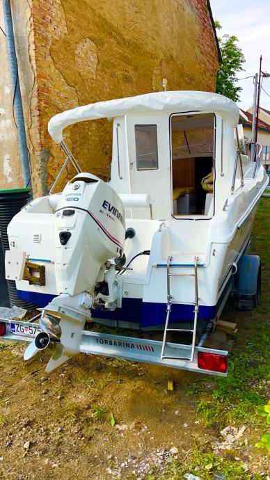 QuickSilver 650 Weekend u vrlo dobrom stanju 2006.godina,kompletna oprema za plovidbu,fischfinder,muzika,kompletno nova rasvjeta,Reflektor na krovu sa daljinskim upravljačem,ventilator u kabini,nosači za štapove Itd. Brod je idealan za višednevni boravak na moru,ležaj u kabini,stol sa sjedištem koje se također pretvara u ležaj,sudoper u kabini,tuš na krmi,spremnik pitke vode,stol na krmi,novo platno od tende itd. Motor je Evinrude E-tec 150 sa oko 700 sati rada kupljen u Sviben redovito servisiran kod njih,servis upravo napravljen kompletan i spreman je za sezonu! Uz brod ide i solarni panel 400 W i prenosna baterija koju je moguće puniti i na struju! Uz brod ide i prikolica Torbarina kompletno ispravna sa novim gumama! Mogucnost kupnje pomoćnog motora Suzuki 6 KS sa 0 sati rada.Za ozbiljnog kupca mogućnost korekcije cijene! Brod se nalazi u Karlovcu gdje se može i pogledati!
