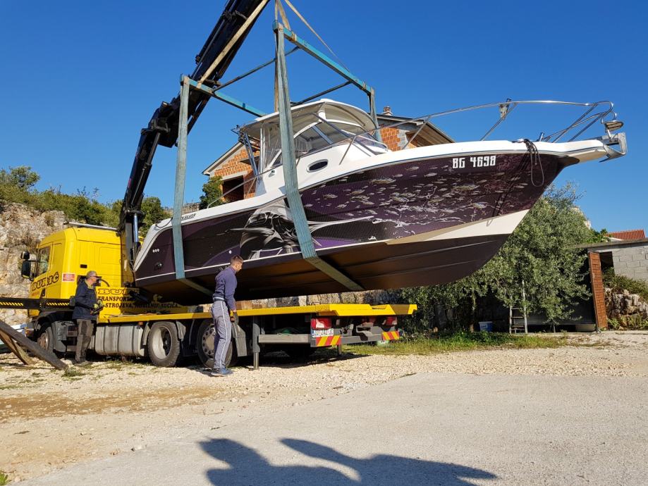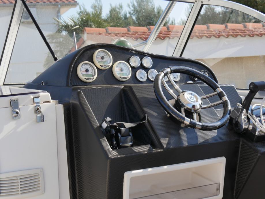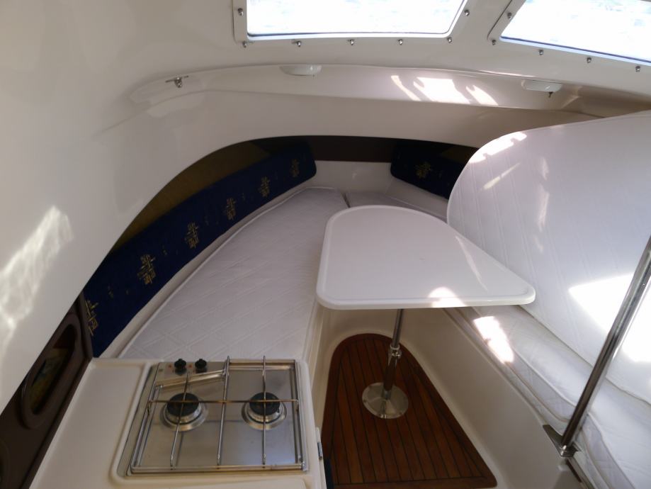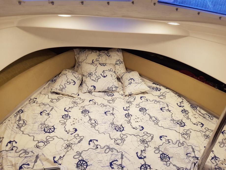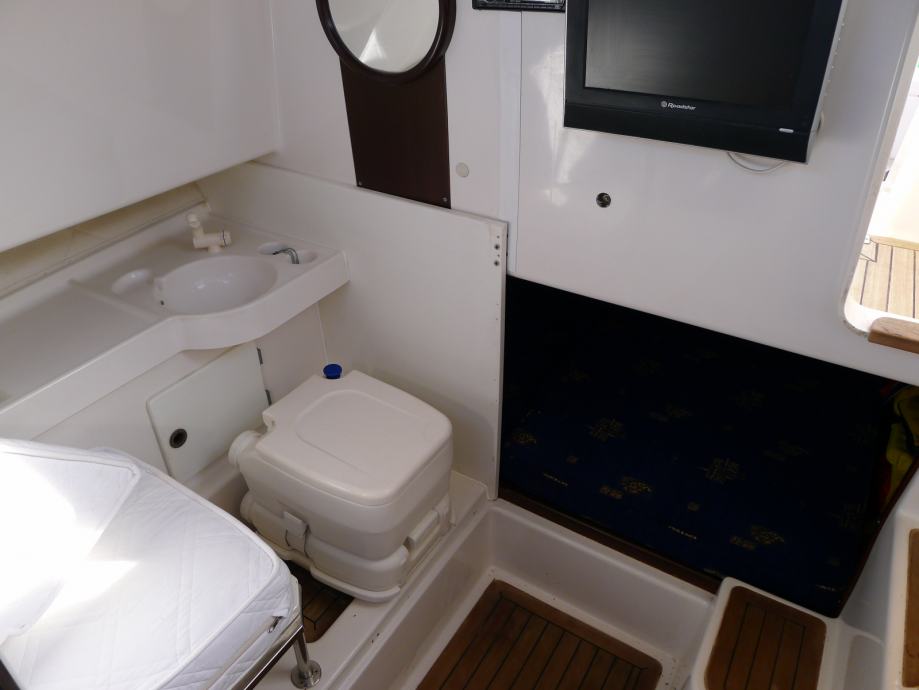tuš, LED TV, frižider, plinski štednjak sa dva plamenika, radio s MP3, DVD player, kemijski WC, GPS & Fishfinder Raymarine Dragonfly 7 s brončanom sondom
