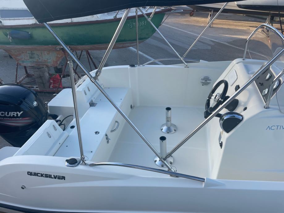 Plovilo nema kabinu ali ima veliki gavun u konzoli i tendicu. Prova se pretvara u sunčalište.