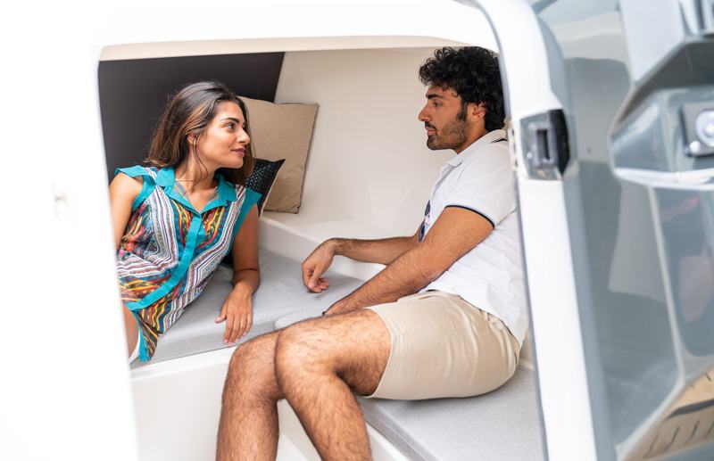 Čamac dolazi u Smart Edition(STOL OD TIKOVINE, STRAŽNJE SUNČALIŠTE, FRIŽDER, TUŠ, STUP ZA VUČU SKIJAŠA, LED RASVJETA, GPS/PLOTTER SIMRAD CRUISE 9, FUSION STEREO, MOORING KIT) paketu opreme. Uz navedeni paket, čamac još sadrži: