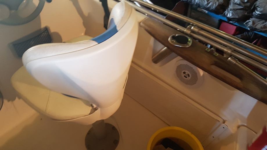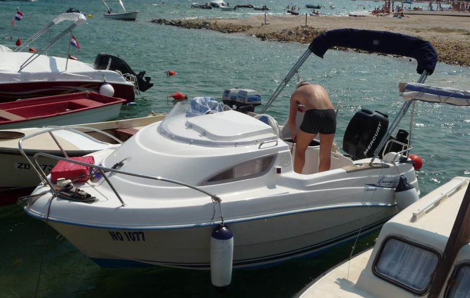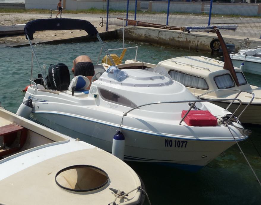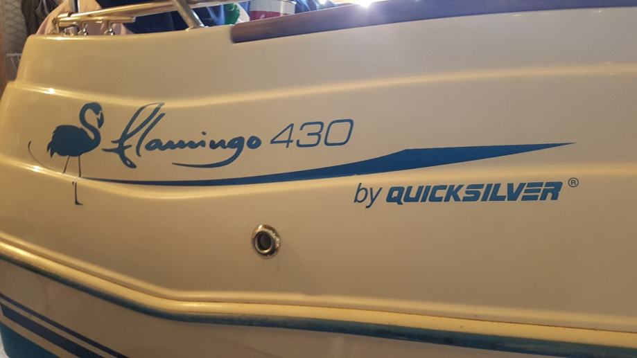 Prodajem motorno plovilo sa kabinom Quicksilver Flamingo 430 sa Mercury 40 motorom. Od opreme ima svu užad, sidro, pomorsku navigaciju GPS, radio CD/MP3, prsluke za spašavanje, bokobrane, prijenosni rezervoar, tendu, stepenice za ulazak u more, inox ograde, prsluke za putnike itd. Dakle sve što je potrebno za sezonu pa nema potrebe išta dodatno kupovati. Motor je Mercury 40KS sa elektronskim ubrizgavanjem (vrlo mala potrošnja). Prijavljen u Zadru (na slikama vidljiva jos stara registracija) i nalazi se na orginalnoj prikolici. Plovilo ima jako malo radnih sati jer je zbog privatnih obaveza bio u moru samo prve tri sezone. Od tada stoji na suhom vezu konzeriran. Zainteresiranom kupcu prvo detaljno očistim cijeli čamac od prašine, stavim novi akumulator, pripremim prikolicu za prijevoz (ako treba promijenim gume i ležajeve zbog nekorištenja) i sa time je spreman za sezonu na moru. Ako imate nekih pitanja slobodno mi se javite.