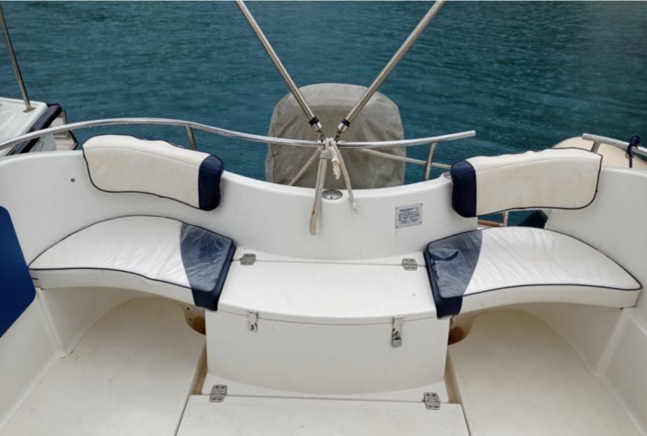 Oprema: zimska/ ljetna tenda, rolo vrata, solar, tus na krmi, frizider 50L, stepenice za ulaz u brod, Northstar navigacija/ fishfinder, bokobrani, zvucnici, akumulator, svijetla,..