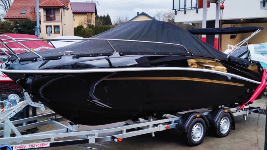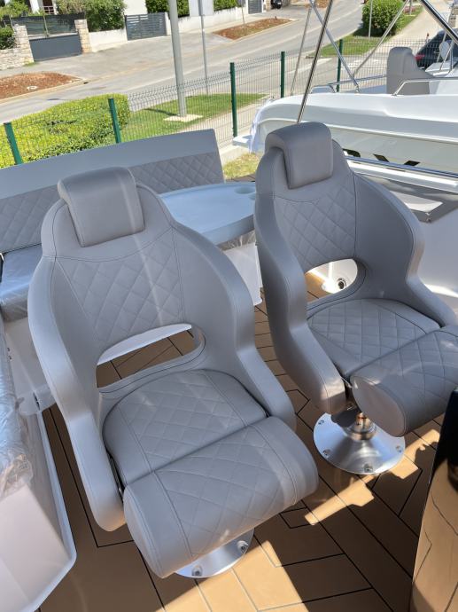 Fotografije služe samo u ilustrativne svrhe i prikazuju dodatnu opremu. Standardna oprema uključuje: bijeli trup, vjetrobransko staklo, spremište za sidro, četiri bloka za sidro, bočne ručke, cijevi od nehrđajućeg čelika za odvod vode, kormilarsko sjedalo (Fotelja), ljestve za kupanje, tapecirana sjedala, madrace u kokpitu, pramčane gume, ukrase za gume od nehrđajućeg čelika i krmenu klupu.