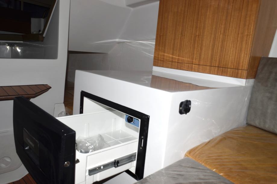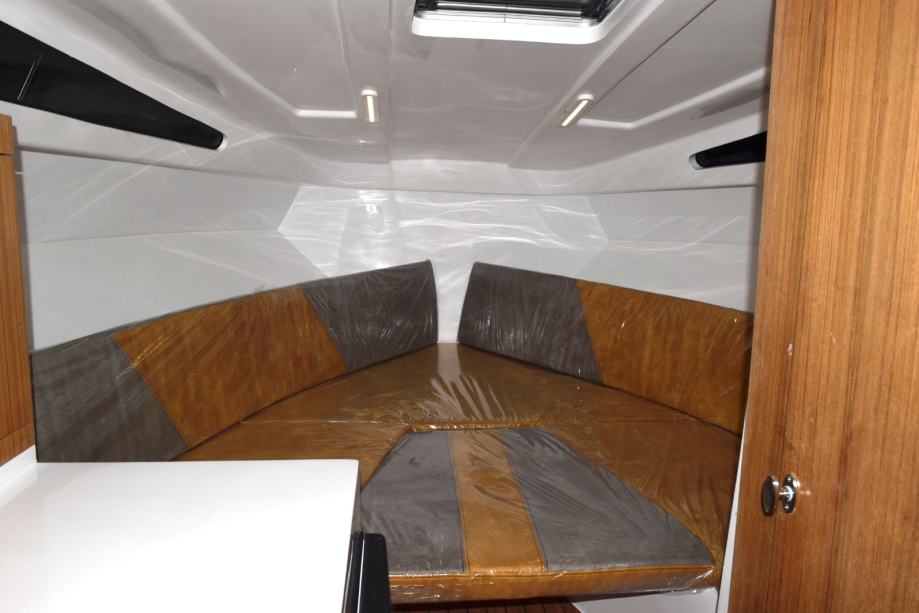 Fotografije su samo u ilustrativne svrhe i prikazuju dodatne značajke. Standardna oprema uključuje: bijeli trup, vjetrobransko staklo, spremište za sidro, četiri bitve, bočne ograde, odvode od nehrđajućeg čelika, kormilarsko sjedalo, ljestve za kupanje, tapecirana sjedala, madrace u kokpitu, gumene bokobrane, završetke bokobrana od nehrđajućeg čelika, krmenu klupu i čajnu kuhinju s hladnjakom, malim štednjakom i sudoperom, kao i WC s umivaonikom.