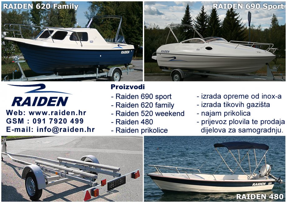 Raiden proizvodnja brodica i prikolica te opreme ze brodice i dijelova za prikolice.