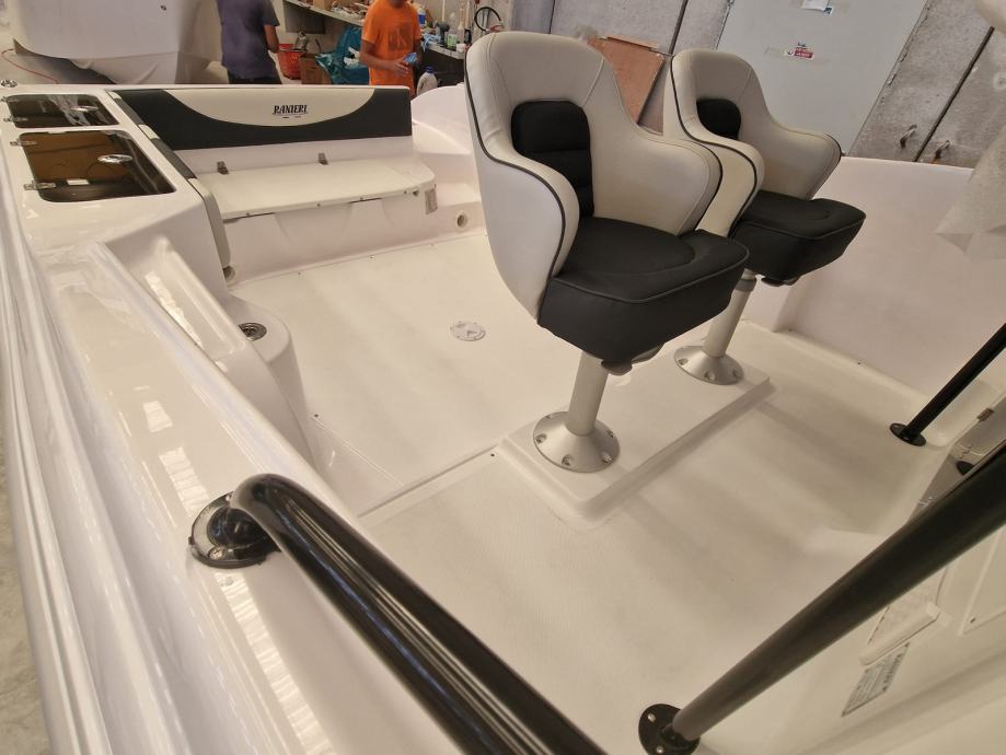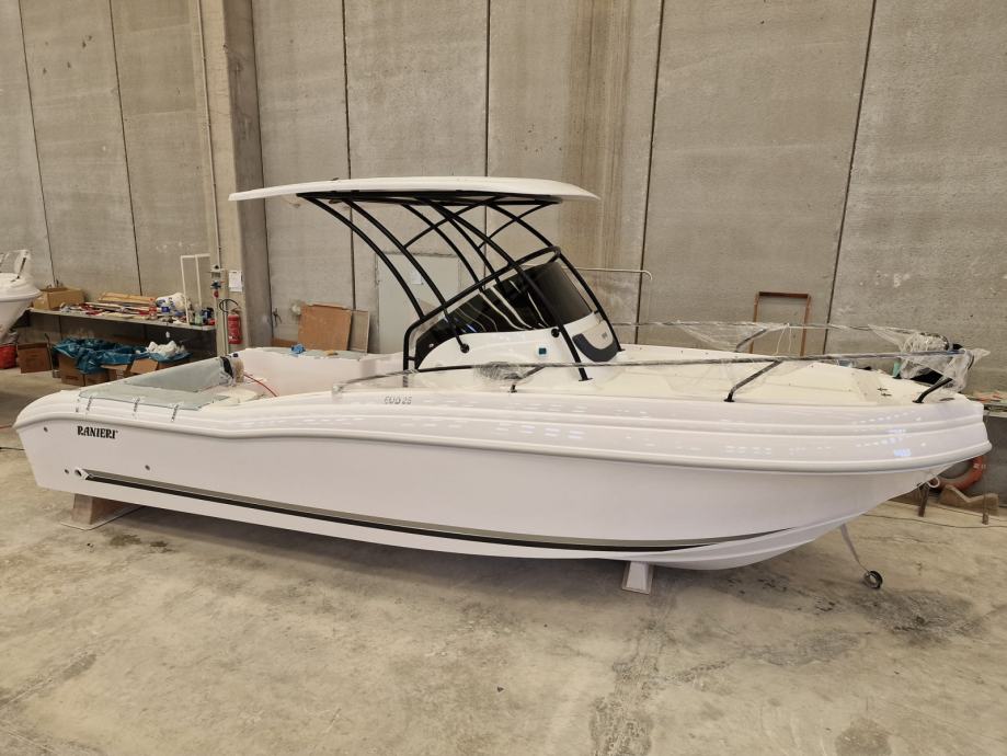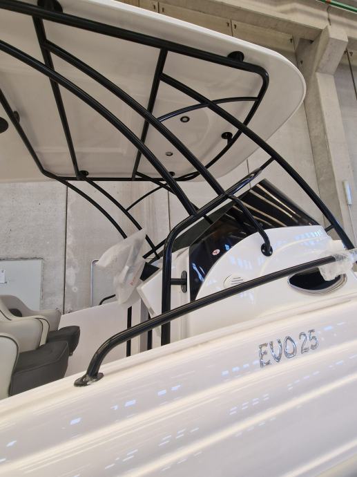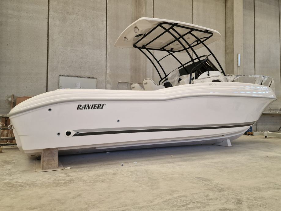 Paluba je prostrana i omogućuje ugodno kretanje te prostor za izležavanje na suncu. Pod palubom se nalazi kabina s ležajevima za najmanje 4 osobe. Kokpit nudi široku klupu na krmi, pod kojim je veliko spremište. Bočni prolazi su široki i sigurni. Obloge na klupama i jastuci za sunčanje su na plovilu u serijskoj opremi.Ranieri EVO 25 je savršen obiteljski brod kojim možete uživati u raznim aktivnostima kao što su sportovi na vodi i krstarenje Jadranskom obalom te upoznati naše otoke i prekrasne uvale.