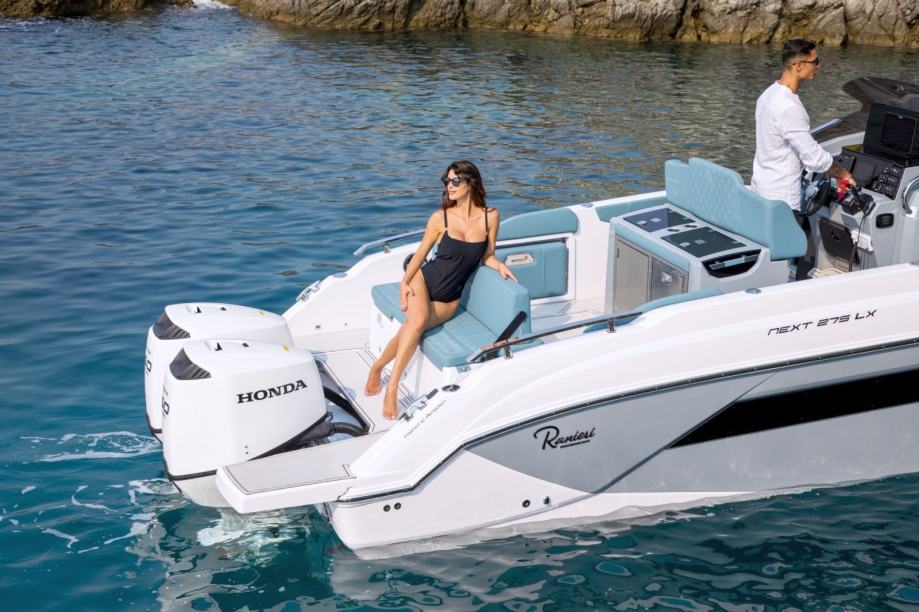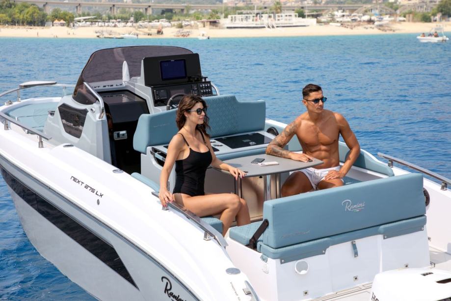 Ranieri Next 275 LX je plovilo koje spaja prostranost, funkcionalnost i moderni dizajn, idealno za obitelji ili veće grupe. S ukupnom dužinom od 8,20 metara i širinom od 2,55 metra, čamac nudi mnogo prostora za udobnu plovidbu i opuštanje. Čamac može primiti od 9 do 11 osoba, ovisno o konfiguraciji, te ima četiri ležaja, što omogućuje ugodan boravak na vodi.