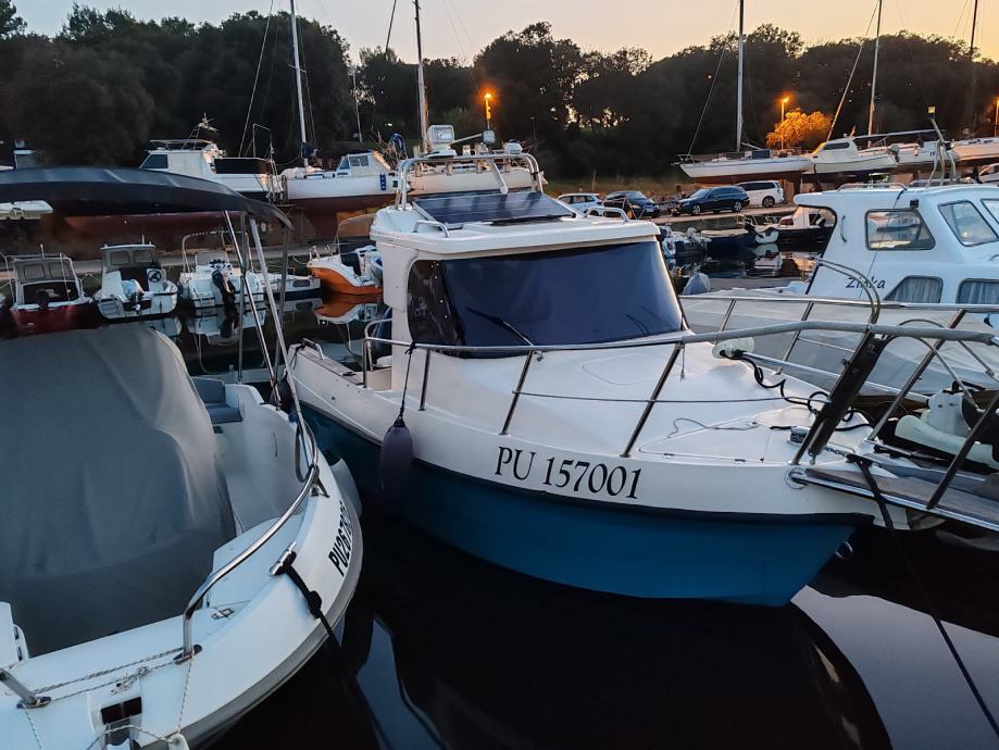 Gliser s kabinom reful 700. Suzuki 140ks 2018g 687 sati od toga 70%napravljeno u ribolovu, tikovina, Tuš, frižider,flapsovi, El. Vinch, bazen za živu ješku, Solarni panel wc, kuhalo itd.