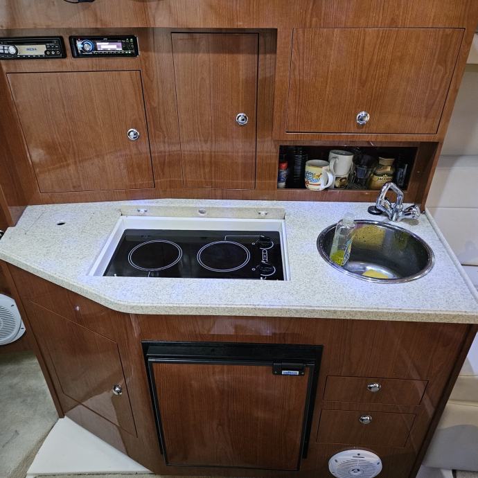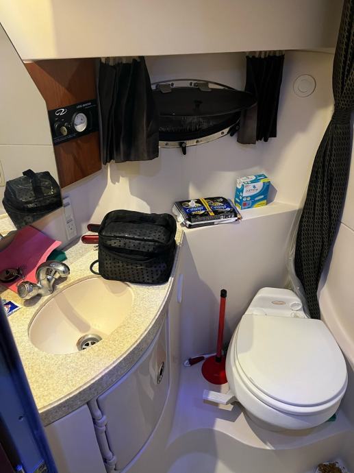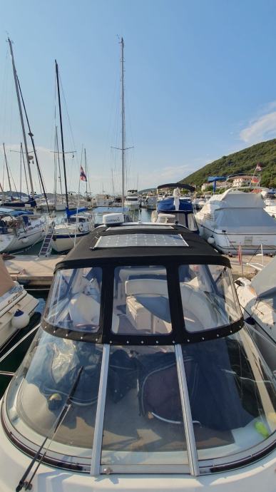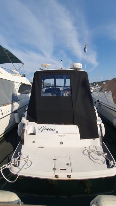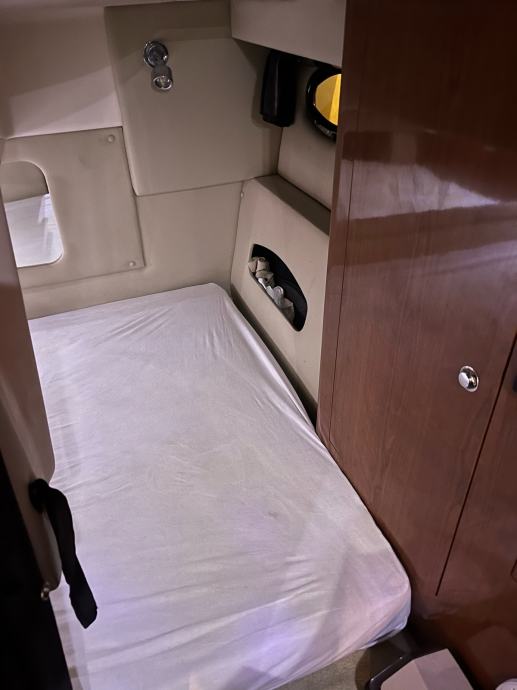 Voda: 150 lit. Max.osoba: 11. Drugi vlasnik (nije bio u charteru). Vrlo dobro stanje, uredno servisiran svake godine, korišteni originalni dijelovi i materijali. Veliki servis je odrađen 2024. te su stavljeni nova tenda, baterije, kromirano sidro i lanac, konopi, pramčani reflektor i svjetla, detektori plina, benzinskih para i CO, protupožarna ampula, radar reflektor te krmeni hladnjak. Brod nije u sustavu PDV-a. Registriran je do 12 mj. 2029. god. Plaćen je suhi vez u marini na Rabu do 9 mj. 2026. Oprema: VHF radio, GPS, kompas, dubinomjer, brzinomjer, generator, el. winch, klima / AC, grijanje, tuš, hladnjak x 2, microwave, WC brodski, DVD, radio, CD player, bimini top, cerada.