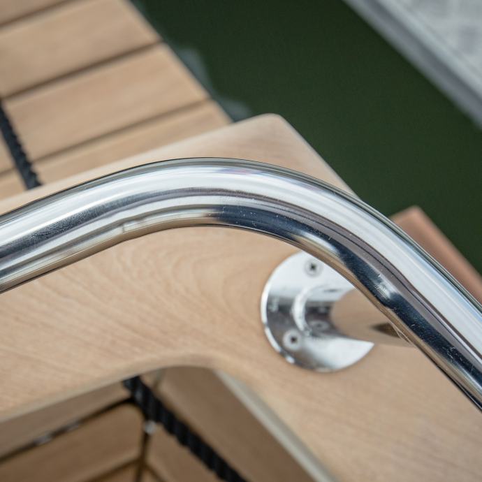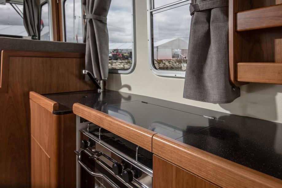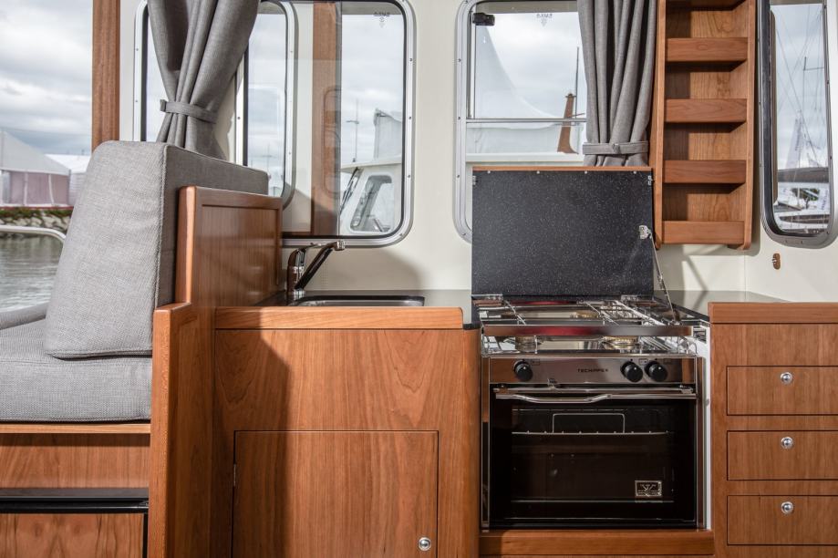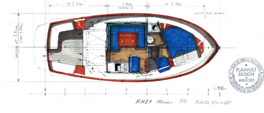 Velik kokpit i široki bočni prolazi čini ovaj brod jedinstven, u izgradnji su korišteni plemeniti materijali sa snažnom prisutnošću masivnog plemenitog drva, robusnost, kvaliteta izrade i uredne završne obrade čine ovaj brod remek djelom. Osjećaj sigurnosti, udobnosti i boravljenja doveden je do krajnjih granica u modelu 850 zahvaljujući opremi koju je dizajnirao dizajner Olivier Flahault da ide dalje i duže!