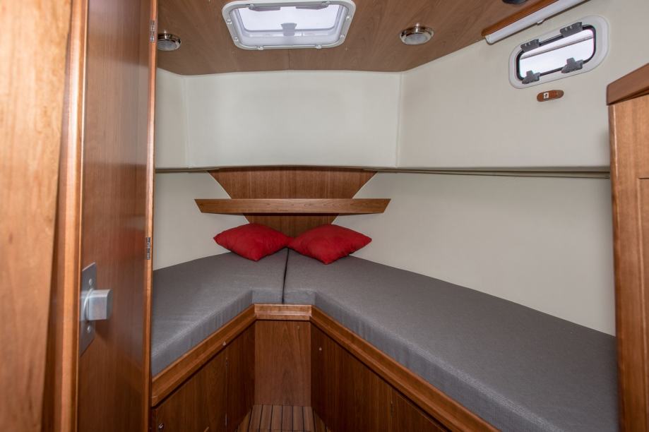 Prostrana kabina sa 4 spavaća mjesta, zatvorenom wc prostorijom, kuhinja.