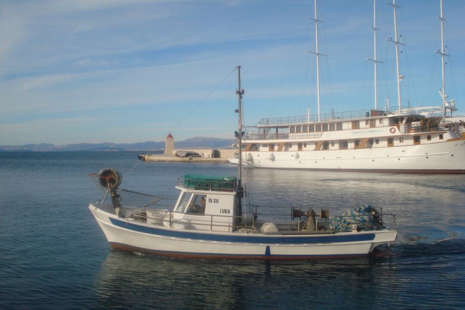 Prodajem drveni ribarski brod sa pripadajućom povlasticom. Prodajem i alate i to : mrežu potegaču, mreže psare, parangale i dr. Motor IMR 33 28,50 kW u izvrsnom stanju, rezervoar za naftu 110 l, hidraulični puratić za mreže, hidraulični vinć za potegaču, sonder, gps,duple komande. Brod je u vrlo dobrom stanju i spreman za rad. Cijena po dogovoru. Zvati isključivo na 091/5435454.