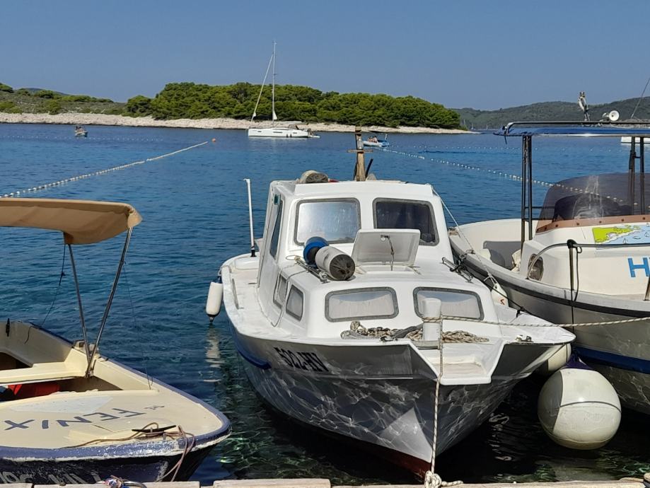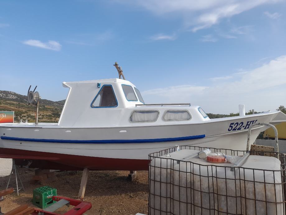 Dužina 7 m, sirina 2 m, wc,2 kreveta,kuhinja ,sonder ,gps,nova tenda,tank vode 100 l, rezervar nafte 120 l,hidraulični vinč,motor sole diezel 33 ks,2800 radnih sati,jako stabilan na moru.