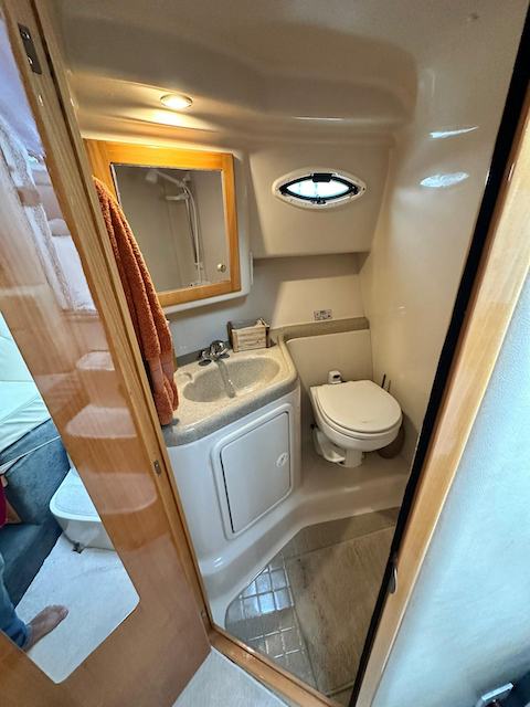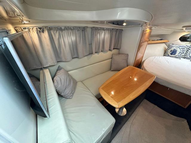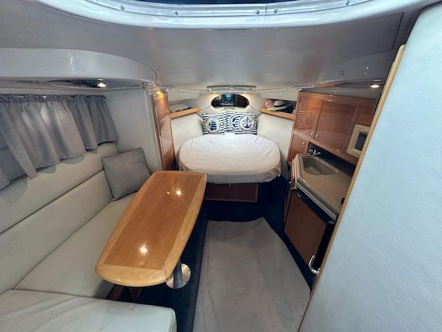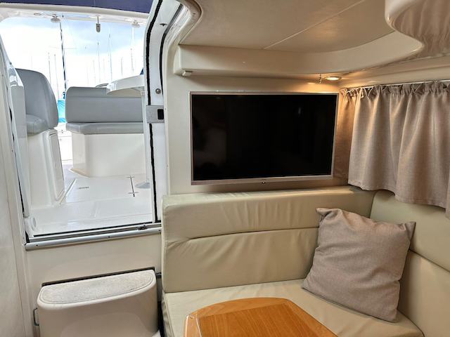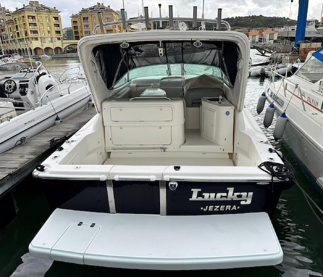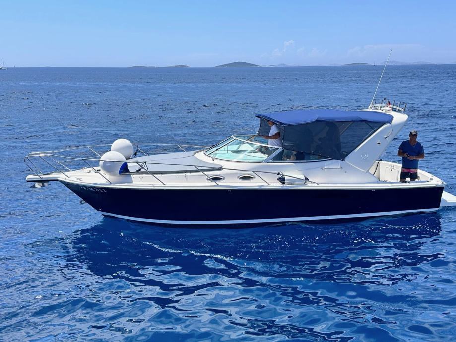 Brod je u top stanju, sve radi i redovito servisirano, besplatna dostava moguća od Zadra do Splita. Prodaje se iskljućivo zbog kupnje većeg broda. Riviera Offshore 3000 Series II impresionira kao elegantan, snažan i prostran brod s izvrsnim plovnim karakteristikama, koje su sigurne i dinamične. Unutrašnjost, s otvorenim studio rasporedom, podsjeća na potkrovlje s velikim bračnim krevetom, čajnom kuhinjom i blagovaonskim kutkom u jednoj prostoriji, nadopunjena zatvorenom kupaonicom s tušem i Vacuflush WC-om. Kokpit je idealan za navigaciju i nudi dovoljno mjesta za goste za blagovaonskim stolom. Praktični mokri bar iza kormilarskog sjedala uključuje sudoper, hladnjak, plinski roštilj i prostor za odlaganje. Strojarnica s dva 280 KS Volvo Penta dizelska motora lako je dostupna zahvaljujući hidraulički podiznom kokpitu. Dodatna oprema uključuje: elektroničke komande, pasarelu, nove tende i ležaljke za sunčanje, kompletan set mrežastih navlaka u kokpitu za maksimalnu zaštitu od sunca, električno sidreno vitlo i nove Raymarine instrumente kao što su ploter Axiom+ uklj. GPS, 3 sonde s Chirp-Sonarom, DownVision, SideVision i RealVision 3D, VHF radio i novi Raymarine autopilot. Brod je sačuvan, servisiran i spreman za pregled.