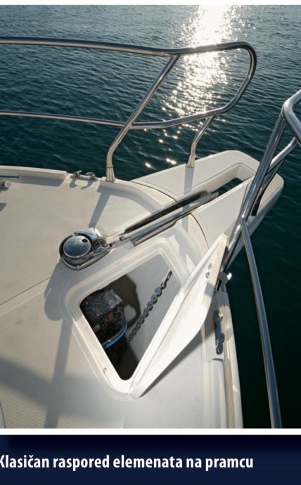 Paluba: protuklizna paluba i kokpit, pramcana platforma za suncanje, krmene stepenice, sidro Rocna, spremiste u kokpitu ,krmeni tus