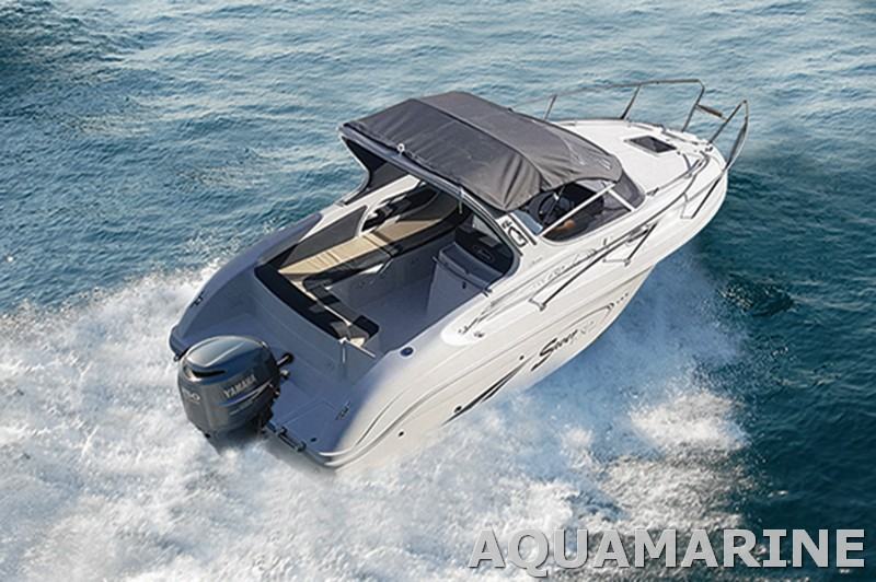izvedbi još uvijek prilično jednostavan za manevriranje i cestovni prijevoz. Maksimalna motorizacija do 200 hp, međutim postiže odlične performanse i sa motorom manje snage. Tijekom dana paluba je sigurno prostor koji ćete najviše koristiti. Uz stol postat će ugodna blagovaonica a možete klupu produžiti u veliko sunčalište. Pored ormarića ispod jastuka, na palubi se nalazi sudoper s slavinom, s mogućnošću kombiniranja hladnjaka i štednjaka. Da biste se zaštitili od sunca ili se potpuno izolirali izvana, na raspolaganju su dvije tende, djelomično ili potpuno zatvorena, s vratima i velikim PVC prozorima. Noću se međutim premještamo na donju palubu, gdje nalazimo blagovaonicu koja uključuje krevet ili sofu i odvojeno, toaletnu sobu.