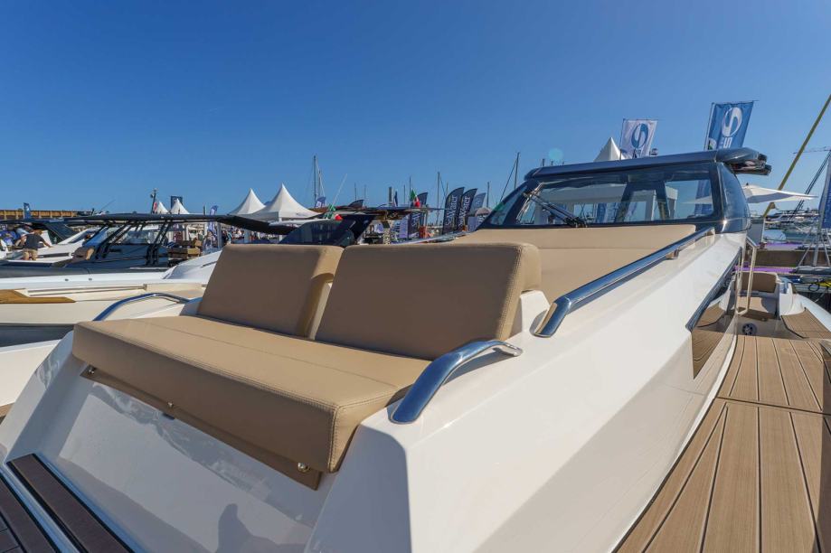 Verzija s vanbrodskim motorom je izrazito agresivna, a želja za pogonom, snagom i čvrstoćom je trenutna. Dvije velike odvojene palube za sunčanje na krmi pružaju funkcionalan pristup moru. Konzola s tri sjedala i moćni tvrdi krov, dok ispod palube pažnja prema detaljima i velika briga ne prepuštaju ništa slučaju, a raspored nudi "sofisticiranu atmosferu".