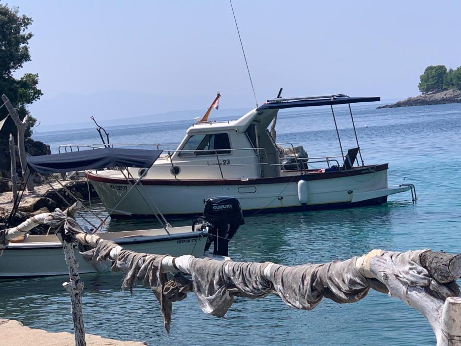 Sciallino 23 s dva unutarnja yanmara sa po 100 konjskih snaga, samo 1500 radnih sati, duple komande, puno dodatne opreme, solarni paneli, el sidreni vitlo, tenda, idealan brod za obiteljska krstarenja i ribolov.