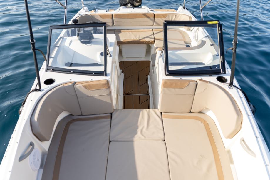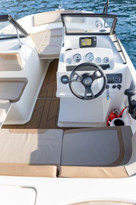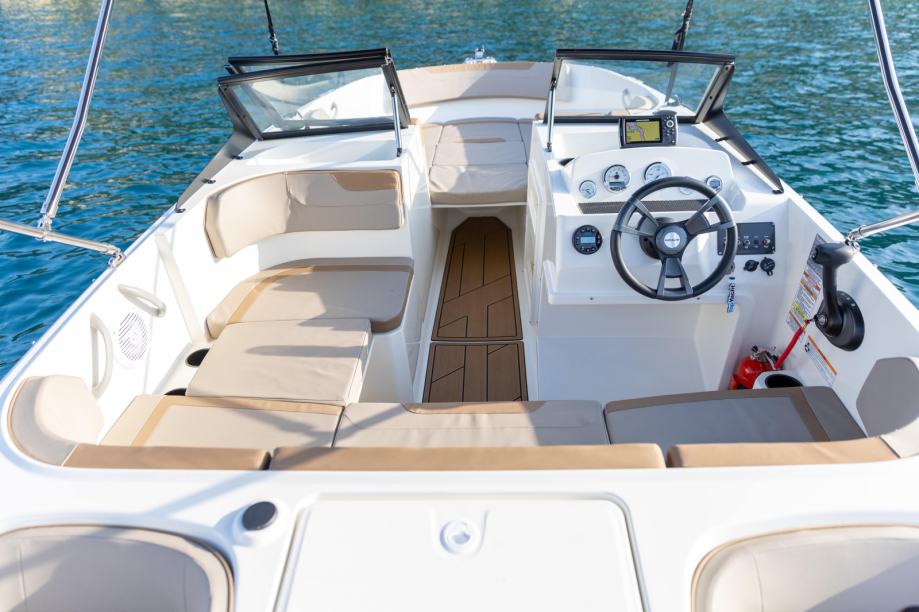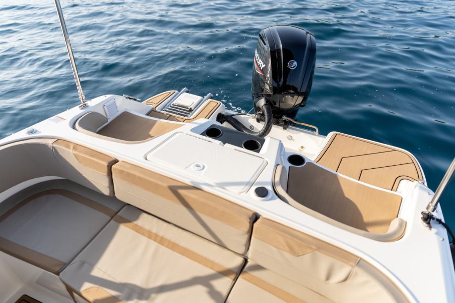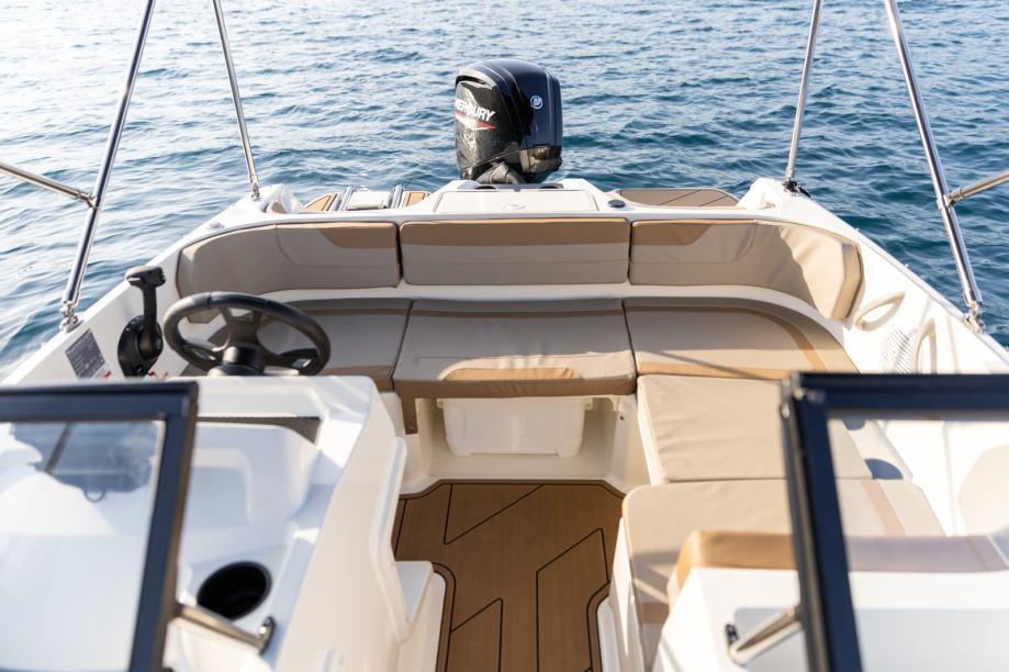 Nema bimini tendu, radio, GPS i tuš ali su sve rupe već spremne jer je sve bilo montirano.