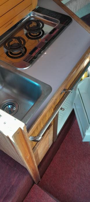U brodu je kuhinja i wc, stol koji se preslożi krevet .może spavat 3 osobe u kabini i 2-3 osobe na krmi.