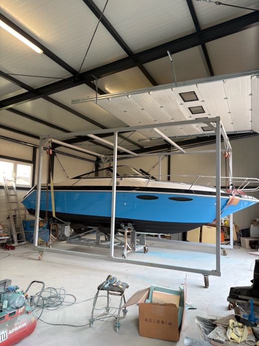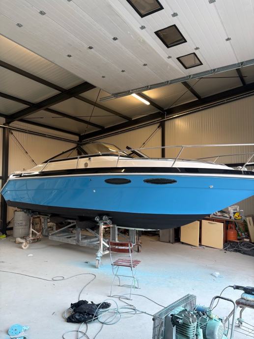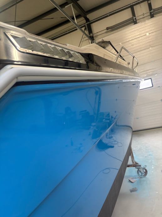 Na brodu sve na novo napravljeno restaurirano, svaka boja je gelcoat uspricana i obradena do sjaja, nista nije akril, kombinacija crnog i plavog gelcoata