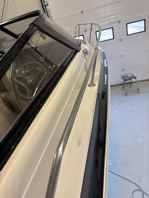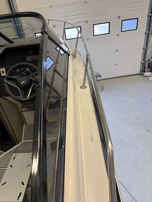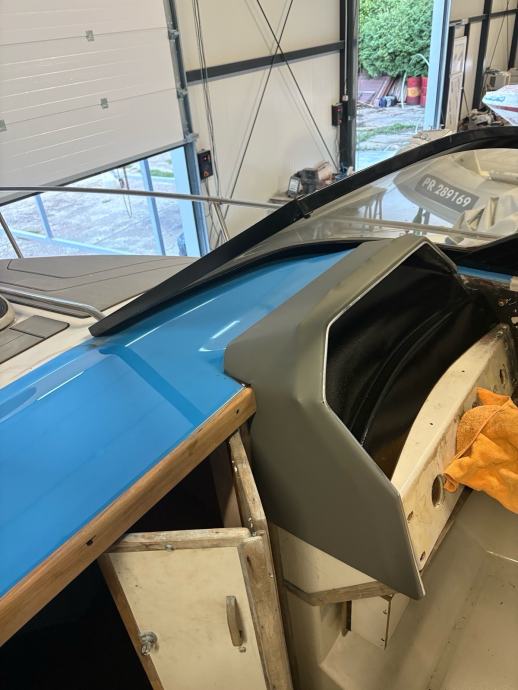 Novi okviri od vjetrobranskog stakla u crnoj sjaj varijanti..brod je uzet kao projekt i nije se na nicem stedilo te se sve rjesavalo kako treba kvalitetno i pedantno