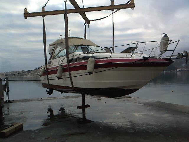 Sea Ray 268 Sundancer 1987 god. duzina 8.70m, motori 2 X Mercruiser 4.3 V6 200ks svaki, kupljeni skoro novi sa 50 sati rada. zatvoreni sustav hladenja, hlade se slatkom vodom, tank benzina 500lt, voda 60lt, 2 kabine, kupaona, elektricni wc, tuš na krmi, elektricno sidreno vitlo, gps-ploter placen 18000 kn, tus na krmi,fishfinder, radio stanica, nova tenda, 3 akumulatora, solarno punjenje, frizider 50lt itd. Brzina 45 milja na sat, potrosnja oko 35-40 lt na sat, upravo napravljen kompletan servis na motorima i na z- nogama placeno ukopno 2000 eur. Istekla registracija, ocuvan prodajem ili zamjena za neki dzip u toj vrijednosti