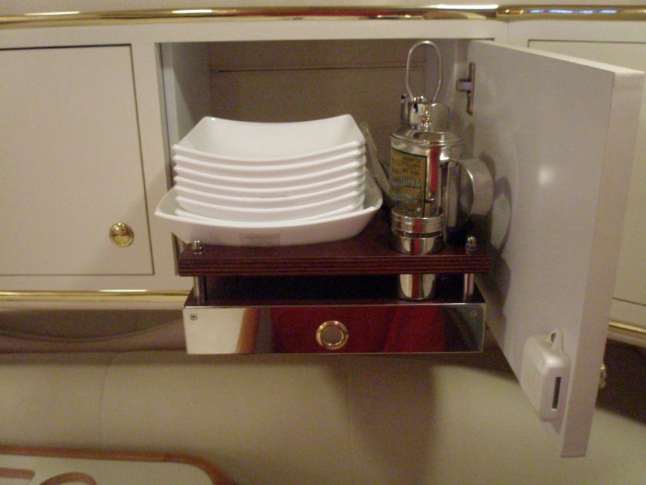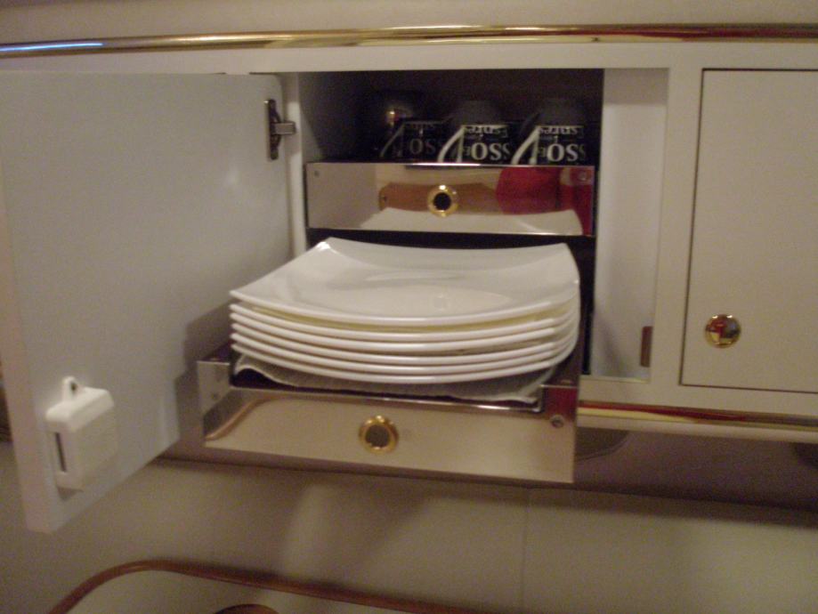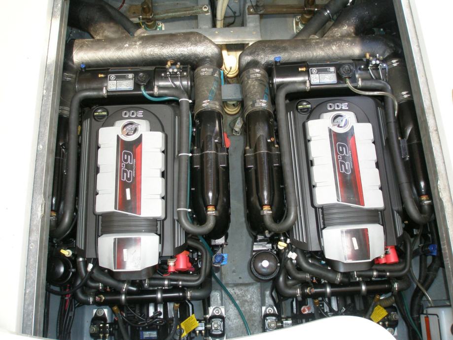 Plovilo je u besprijekornom stanju, redovito je održavano, unutrašnjost je preuređena te je brod korišten isključivo za osobne potrebe. Motori su novi ugrađeni 2x MERCRUISER MIE 6,2l 300 kW sa 0 sati vožnje (međutim zbog lošeg konzerviranja i dužeg vremena mirovanja potreban je popravak od cca 3000€ po motoru). Od dodatne opreme brod ima LDC tv na palubi i u kabini, wc, tuš unutarnji i vanjski, ljetna i zimska tenda, električno sidreno vitlo, GPS sa kartama Jadrana, VHF stanica, dubinomjer, brzinomjer, kompas, automatski pilot, priključak struje za kopno, hladnjak, mikrovalna pećnica, električni štednjak, bubanj za čišćenje školjaka, klima, bojler 22l, inox ljestve, el. flapovi,podesivi volan. tank goriva 2x 350 l, tank vode 140 l, tank otpadnih voda 105l.